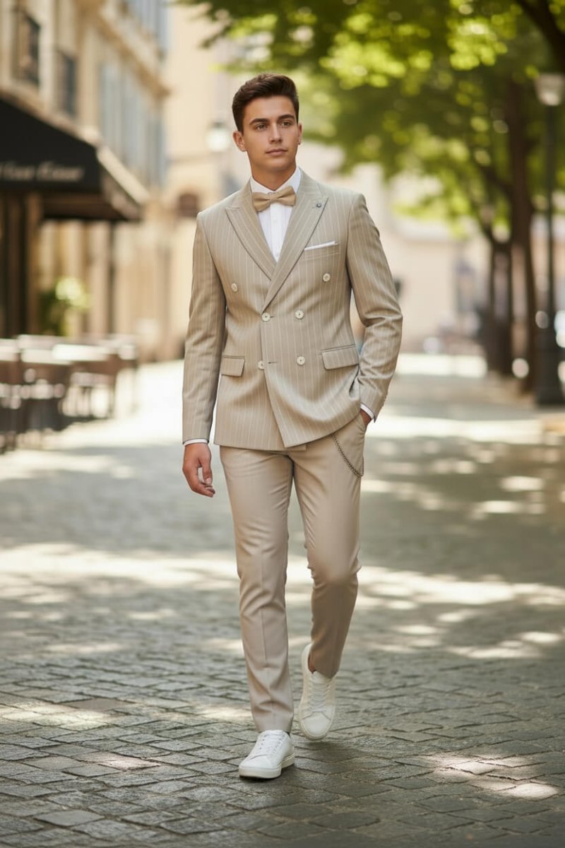 Completo elegante da cerimonia adatto per Comunione,Cresime ed Eventi Composto da 4 Pezzi: Giacca โ Camicia โ Papillon โ Pantalone โ Giacca doppiopetto โ Pantalone โ Vestibilitร : Normale Questo completo รจ progettato con attenzione e cura, offrendo una combinazione perfetta di eleganza e stile
