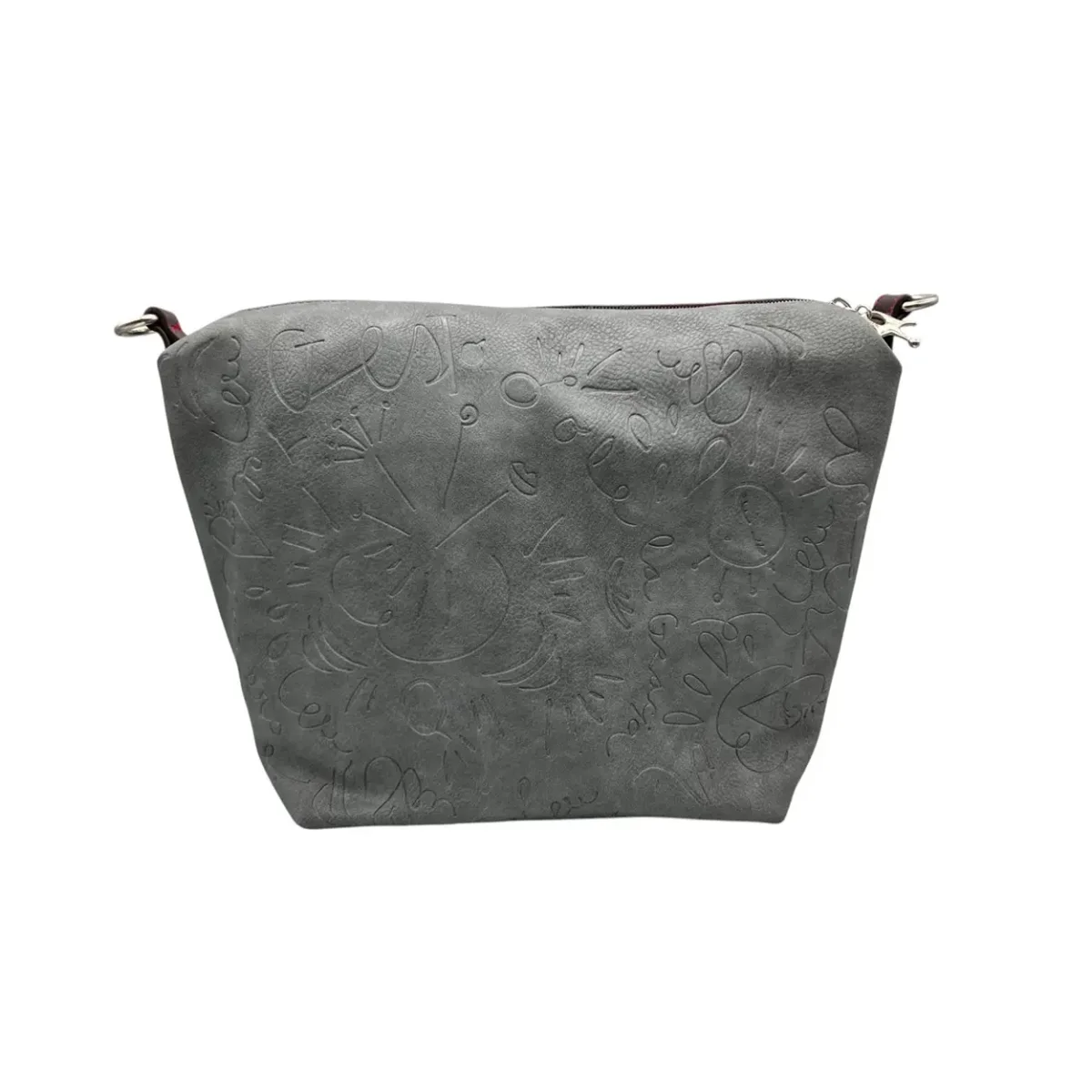 La pochette può essere utilizzata come borsetta a tracolla. Portachiavi. Double face. Tracolla rimovibile. Rifiniture in metallo Zamac. Misure della borsa: altezza 25 cm, larghezza 25 cm, profondità 18 cm.