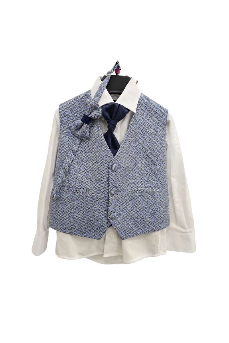 Completo 7 pezzi composto da: Giacca-Gilet-Camicia-Papillon-Cravatta-Pantalone-Pochette- โ Cravatta coordinata al revers della giacca โ Gilet colore cangiante โ Papillon coordinato al gilet