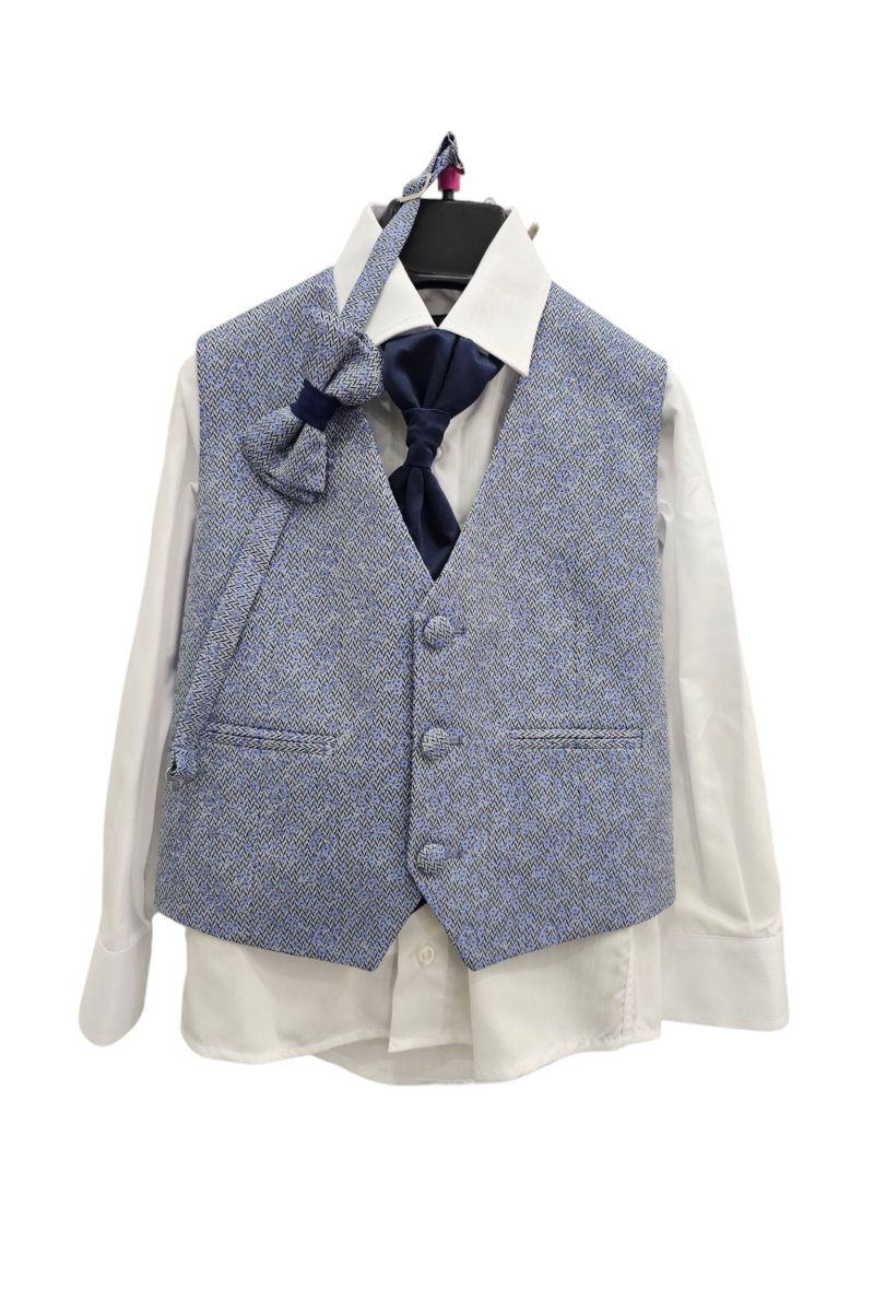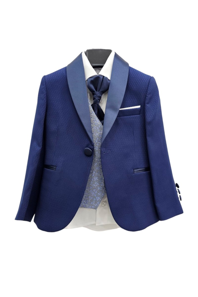 Completo 7 pezzi composto da: Giacca-Gilet-Camicia-Papillon-Cravatta-Pantalone-Pochette- โ Cravatta coordinata al revers della giacca โ Gilet colore cangiante โ Papillon coordinato al gilet