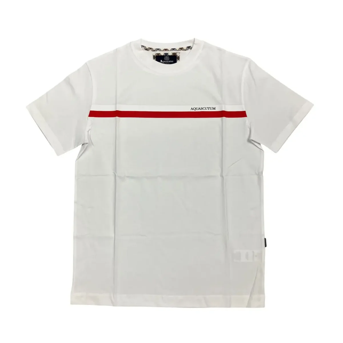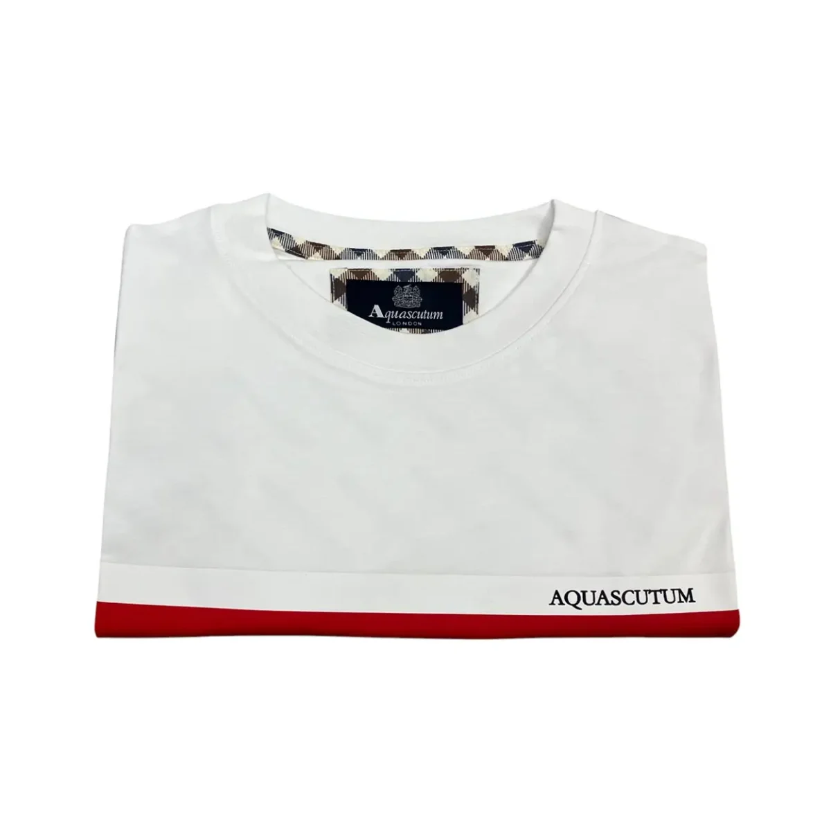 Aquascutum – T-shirt in cotone bianco logo TAQ05 uomo