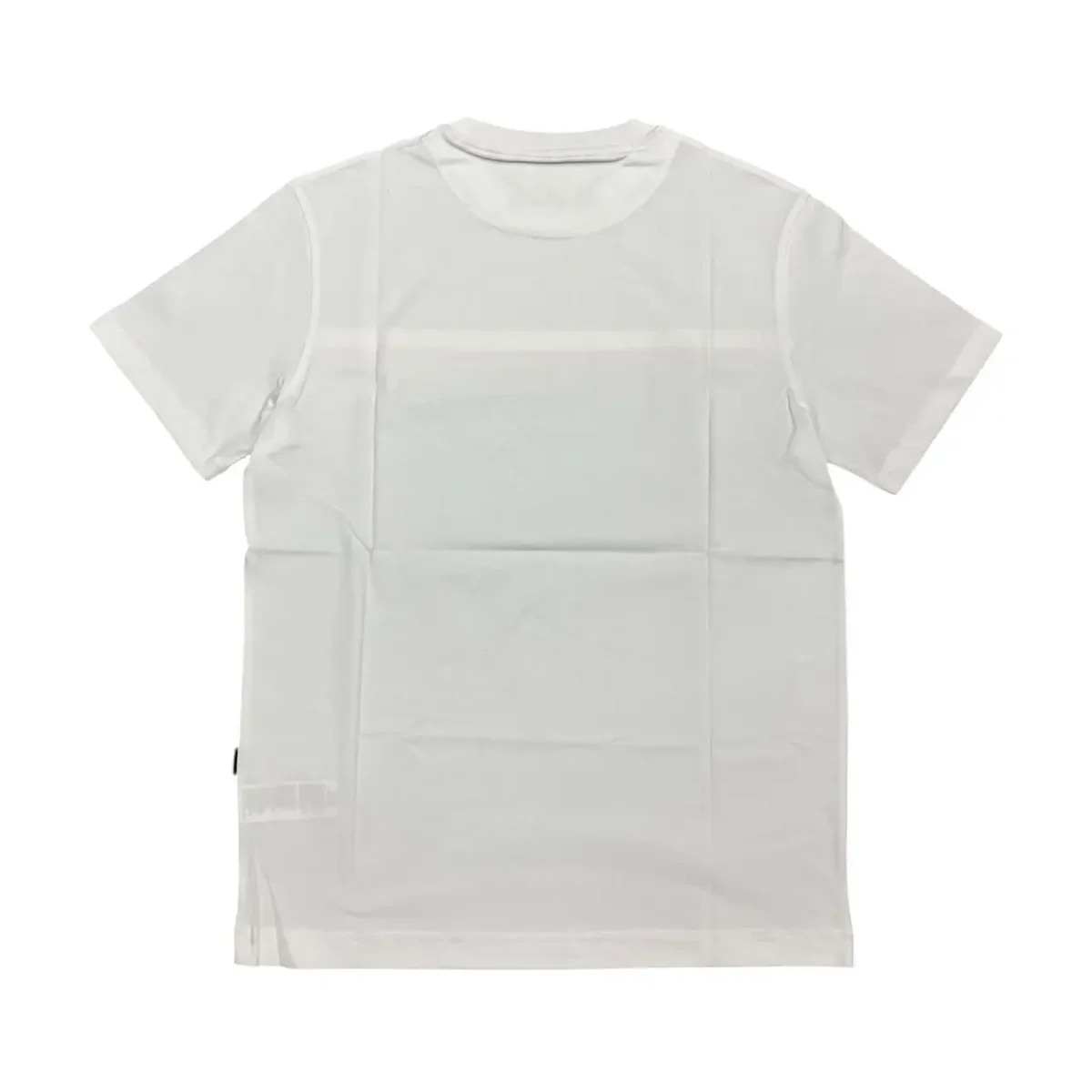 T-shirt in cotone bianco ottico e logo su due strisce bianco e rosso sul petto. Girocollo. Vestibilitร classica regolare. Style TAQ05