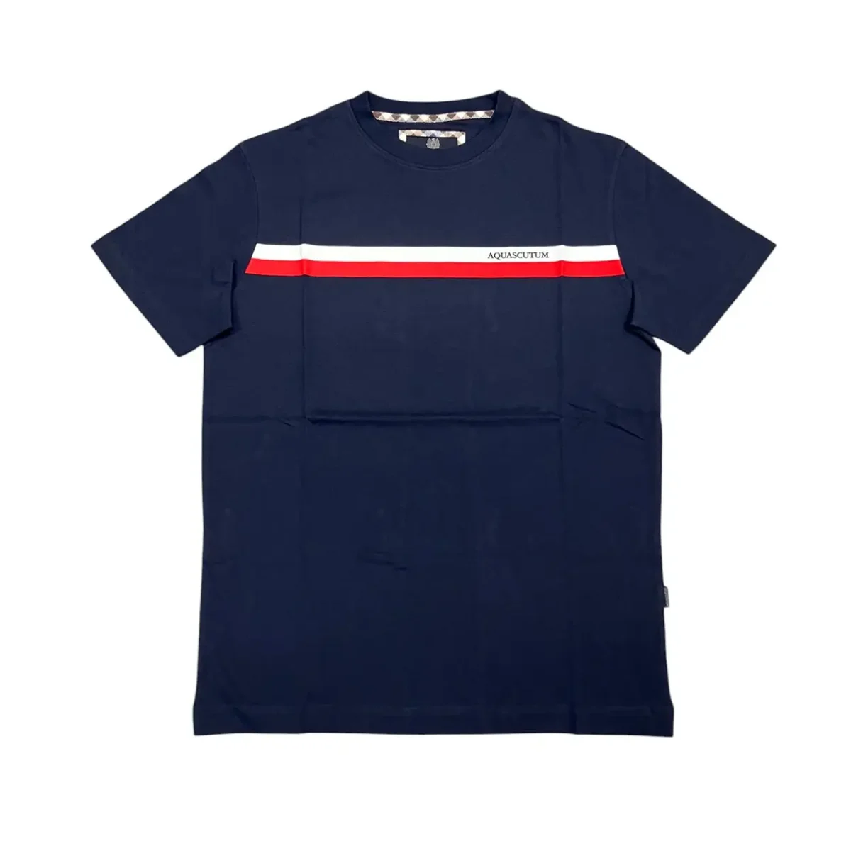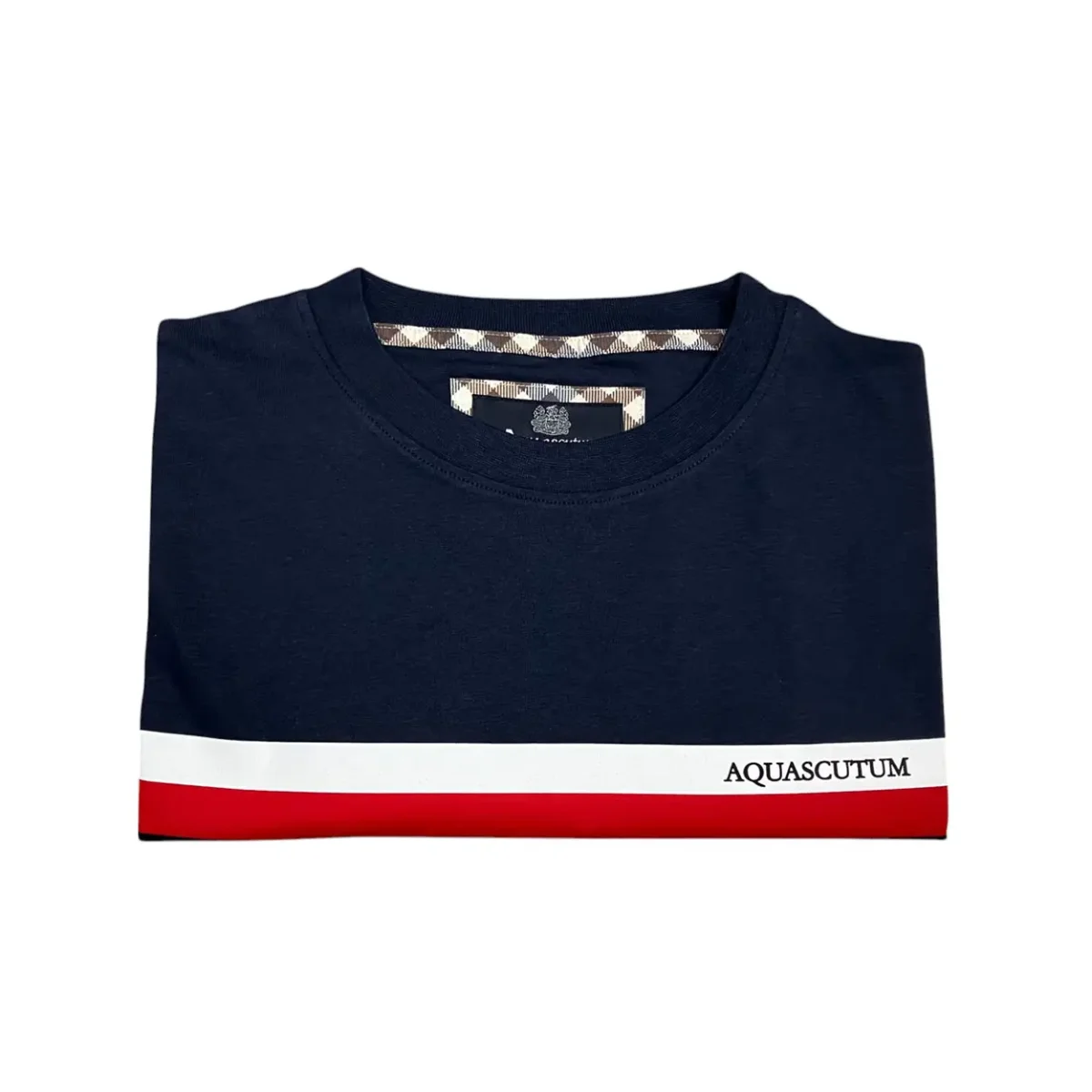 Aquascutum – T-shirt in cotone blu scuro logo TAQ05 uomo