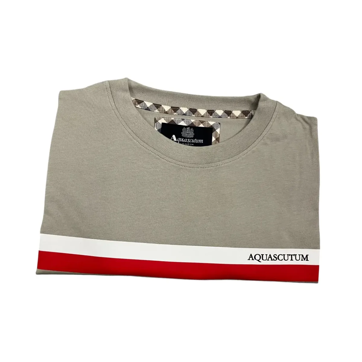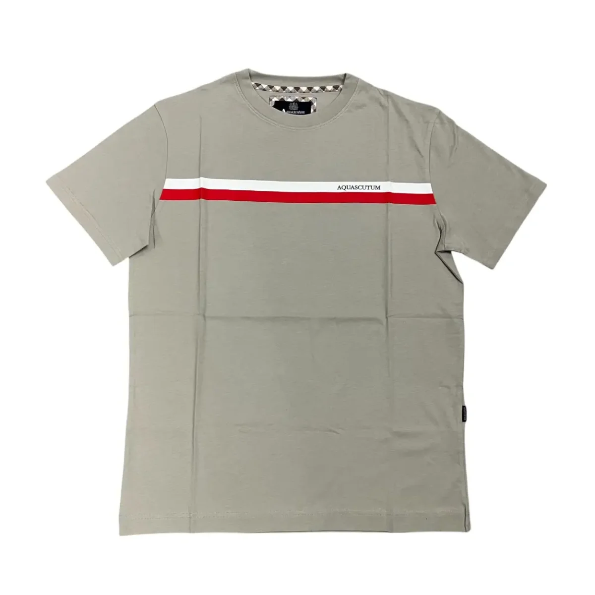 Aquascutum – T-shirt in cotone grigio taupe logo TAQ05 uomo