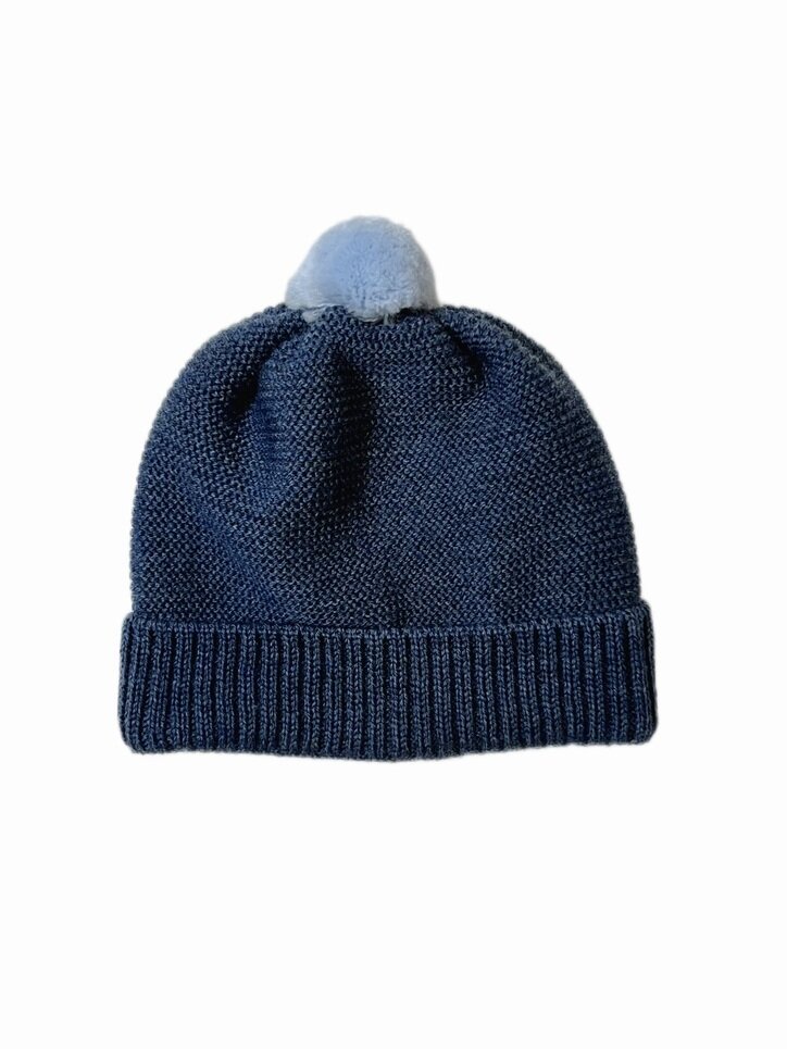 Cappellino 100% lana con pon pon in colore in contrasto
