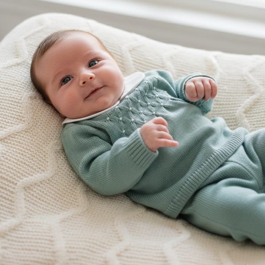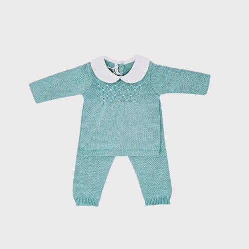 Completo Due Pezzi in Maglia con Colletto Peter Pan Verde Tiffany Eleganza classica e comfort si incontrano in questo delizioso completo due pezzi, perfetto per le occasioni speciali o per regalare un tocco di stile quotidiano ai più piccoli. Realizzato in una morbidissima maglia di alta qualità, questo set assicura calore e libertà di movimento. Dettagli che fanno la differenza: Design Sofisticato: La maglia a maniche lunghe presenta un raffinato colletto “Peter Pan” bianco a contrasto, che dona unaria senza tempo e bon ton. Lavorazione Artigianale: Il petto è impreziosito da un delicato motivo a punto smock con piccoli…