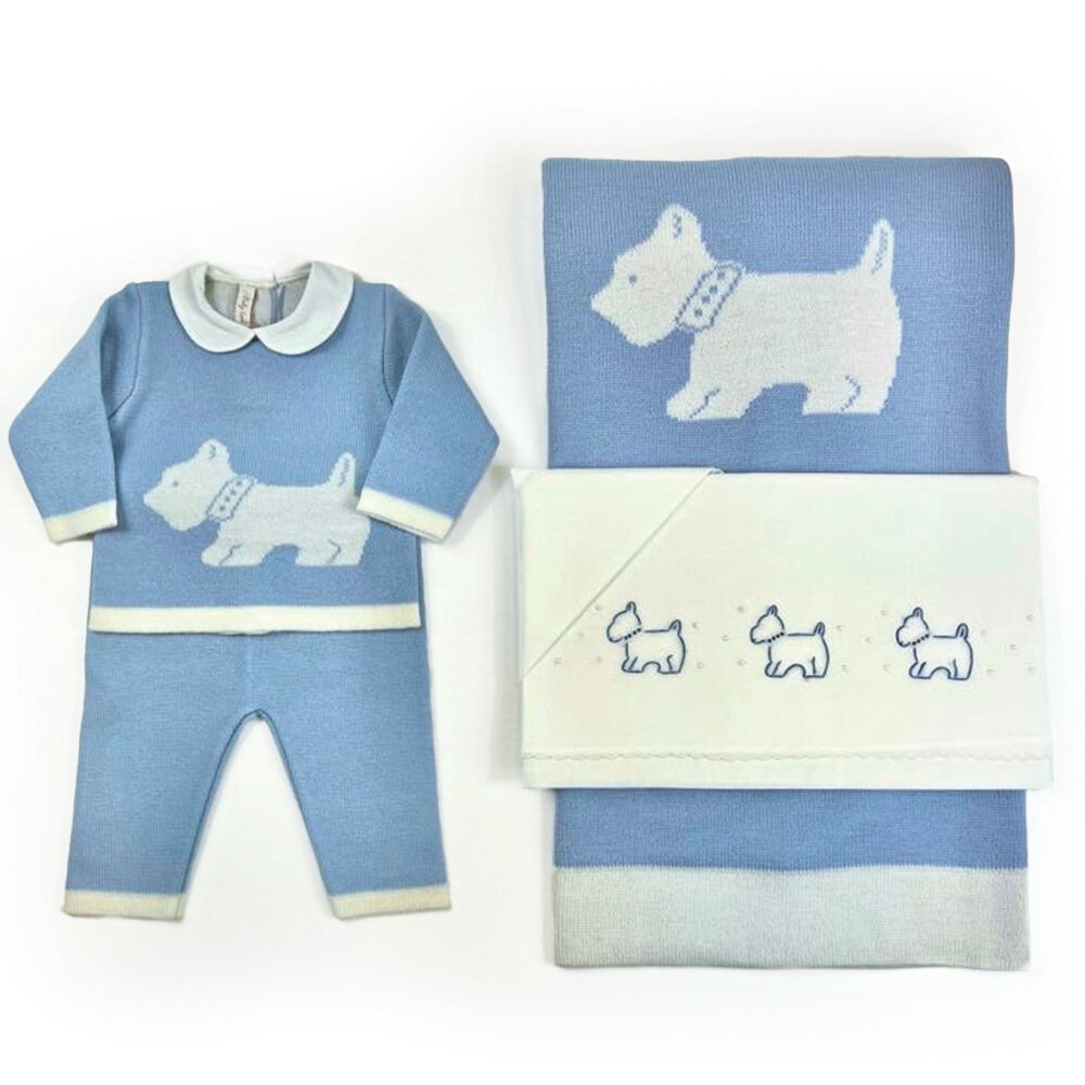 Coordinato composto da coperta e completo nascita in pura lana – lenzuolino in batista di cotone
