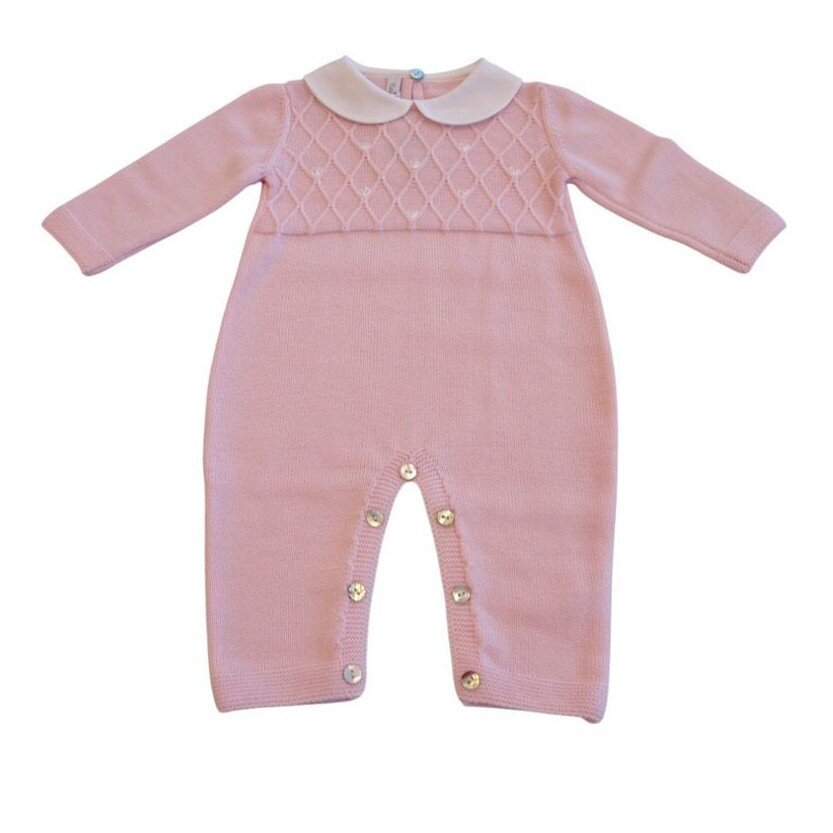 Tutina in pura lana 100% con motivi a losanghe Collettino in piquet di cotone