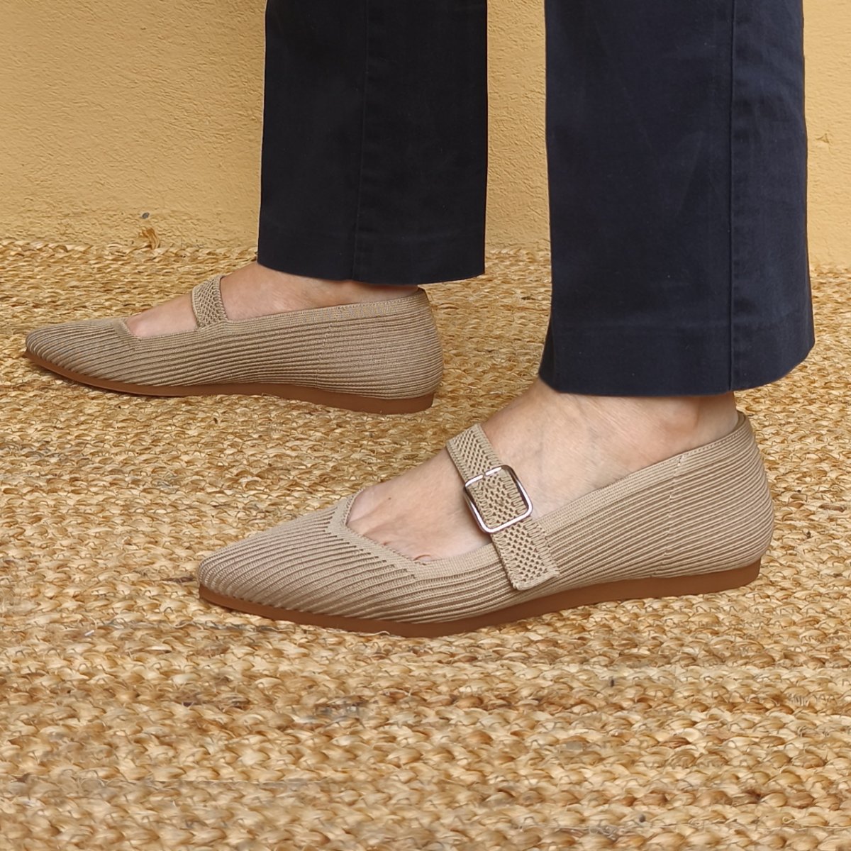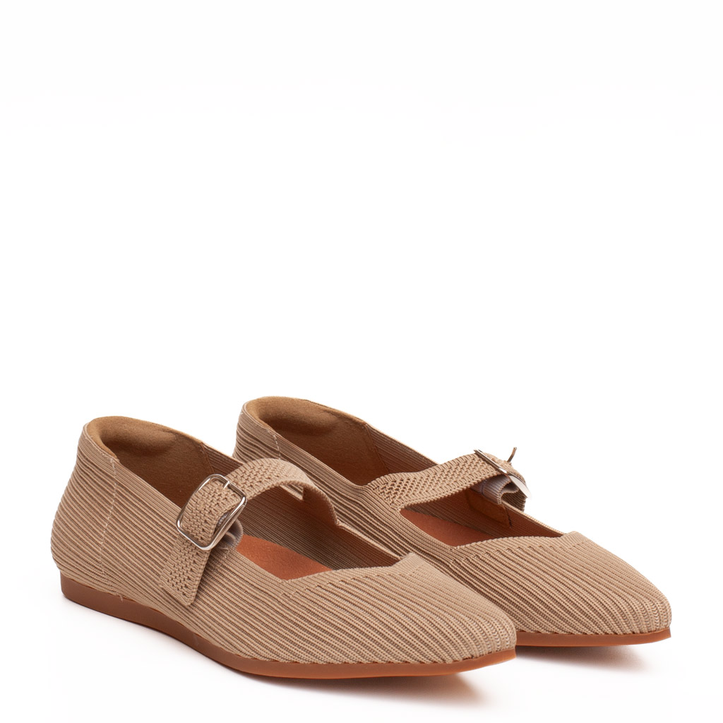 Ballerina da donna con uno stile senza tempo. Realizzata in tessuto traspirante beige e foderata in tessuto antibatterico. Suola flessibile in gomma. Questa scarpa bassa combina comodità ed eleganza. Made in Spain.