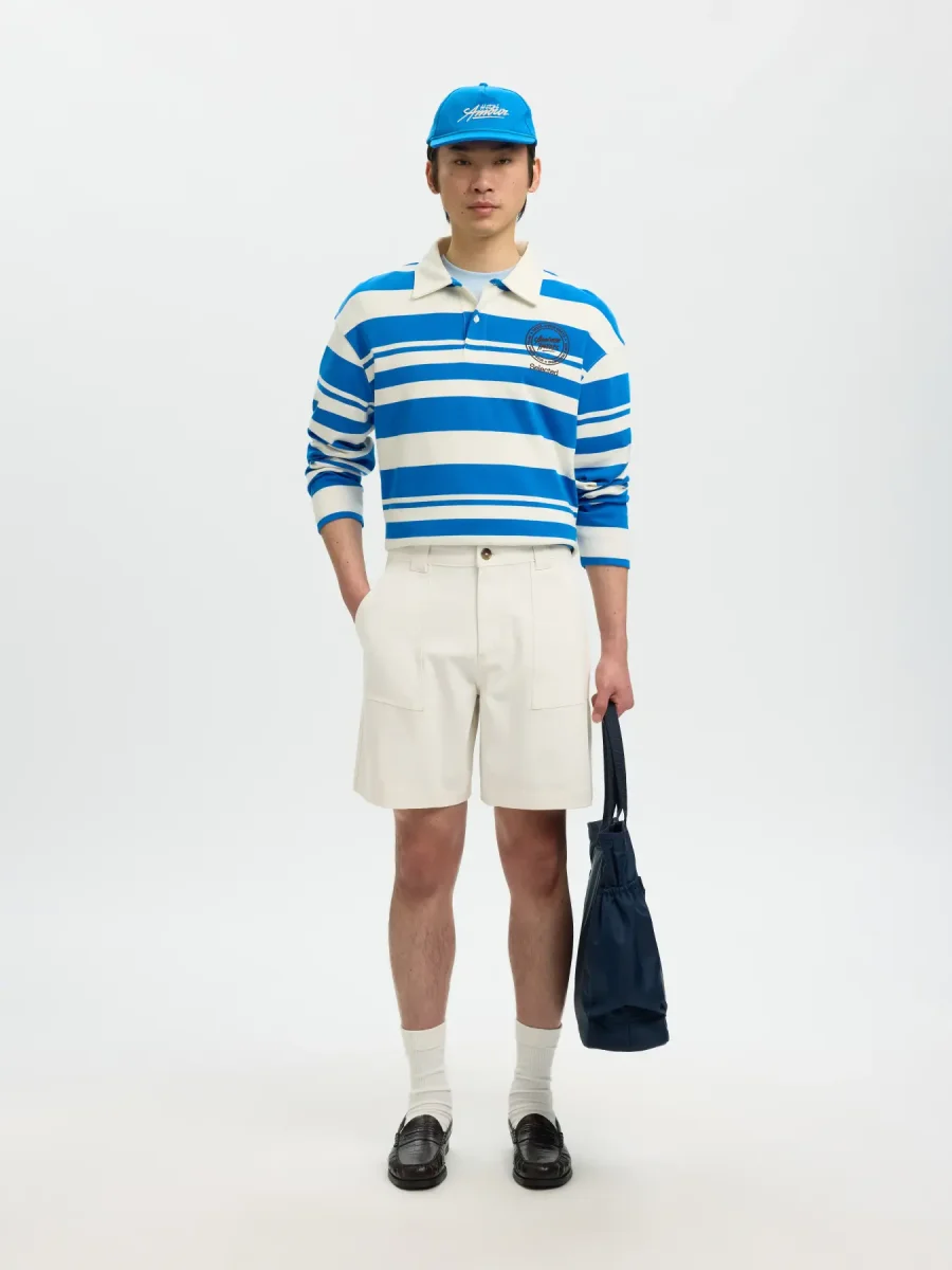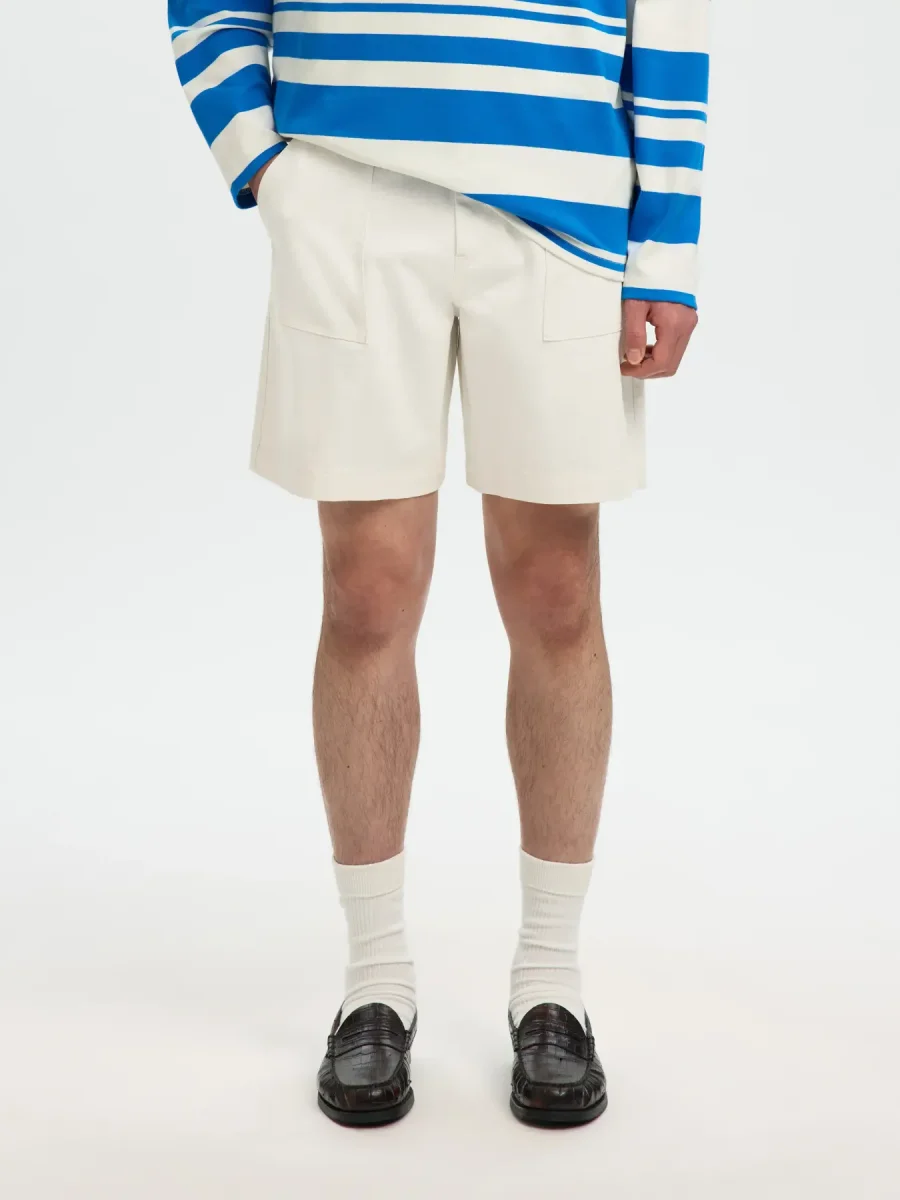I bermuda Hotel Amour di Selected Homme sono il capo estivo ideale per chi cerca comoditร senza rinunciare a un look curato. Realizzati in un blend premium di 92% cotone biologico certificato, 6% poliestere e 2% elastan, offrono traspirabilitร , leggerezza e una piacevole elasticitร in ogni movimento.