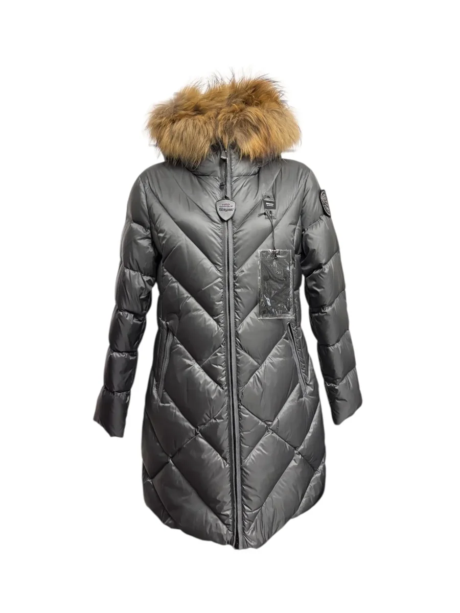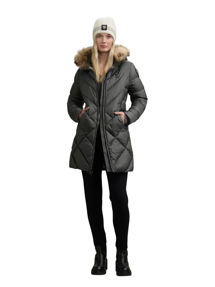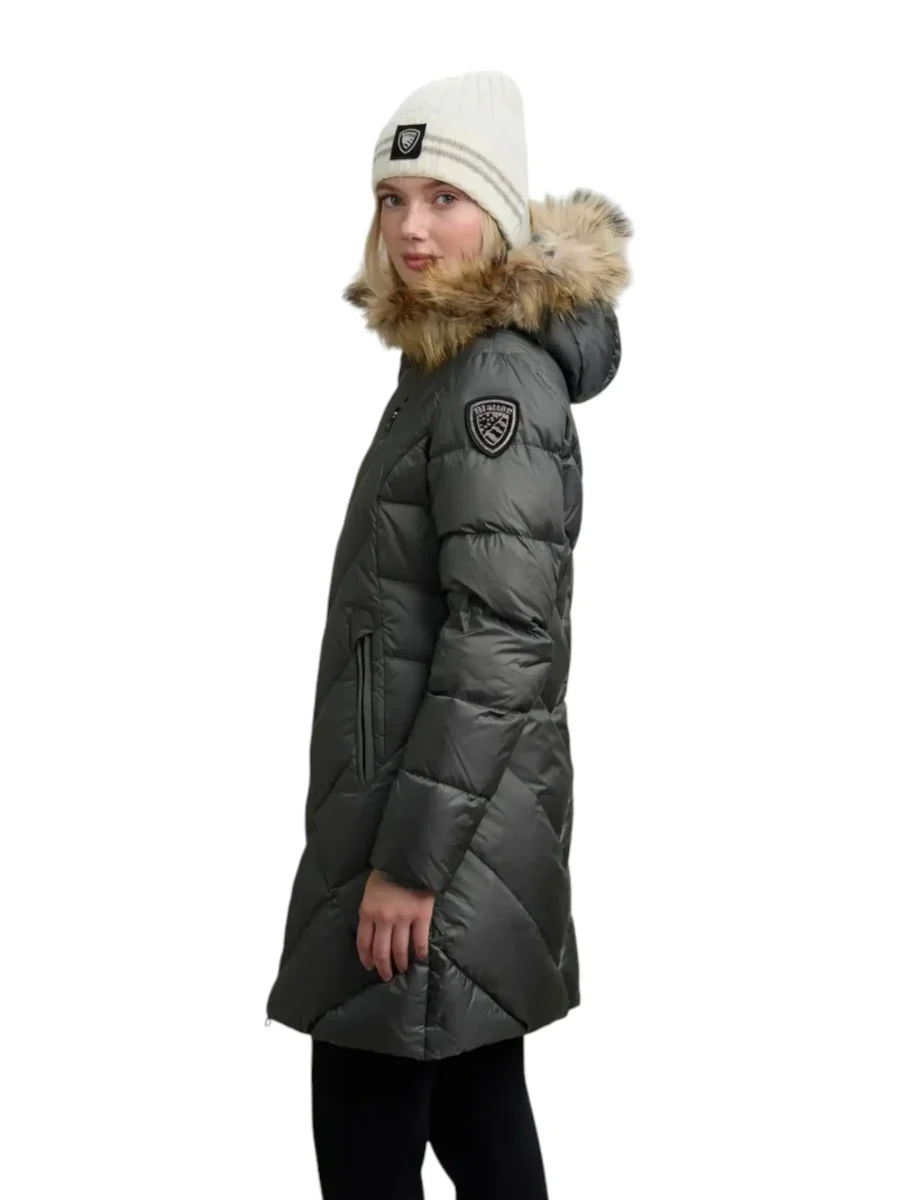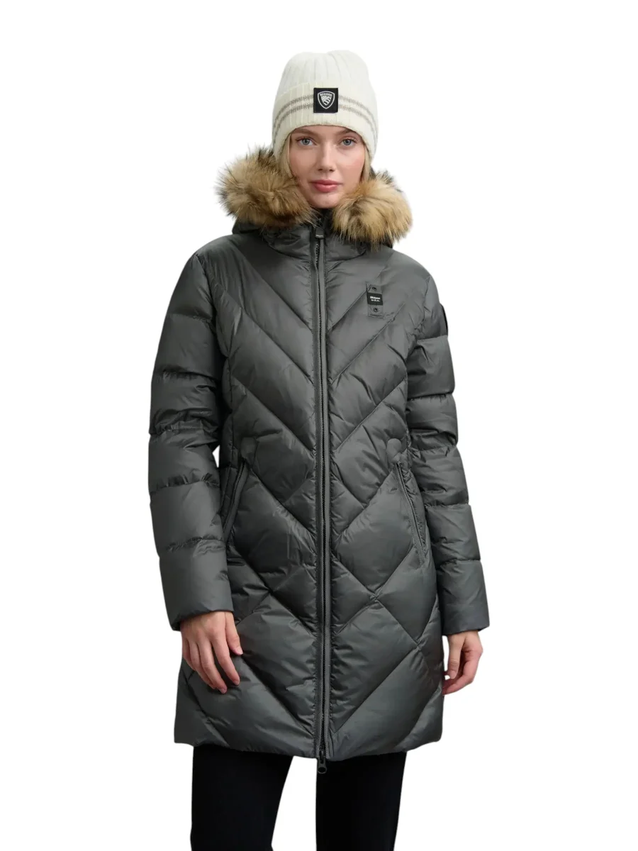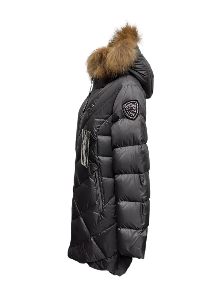 Blauer – Piumino lungo antracite donna con bordo in pelliccia