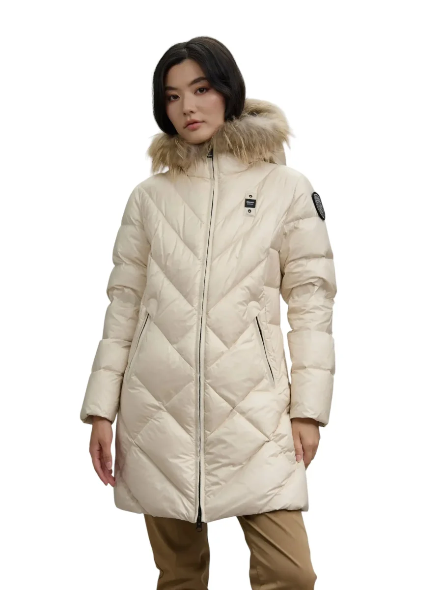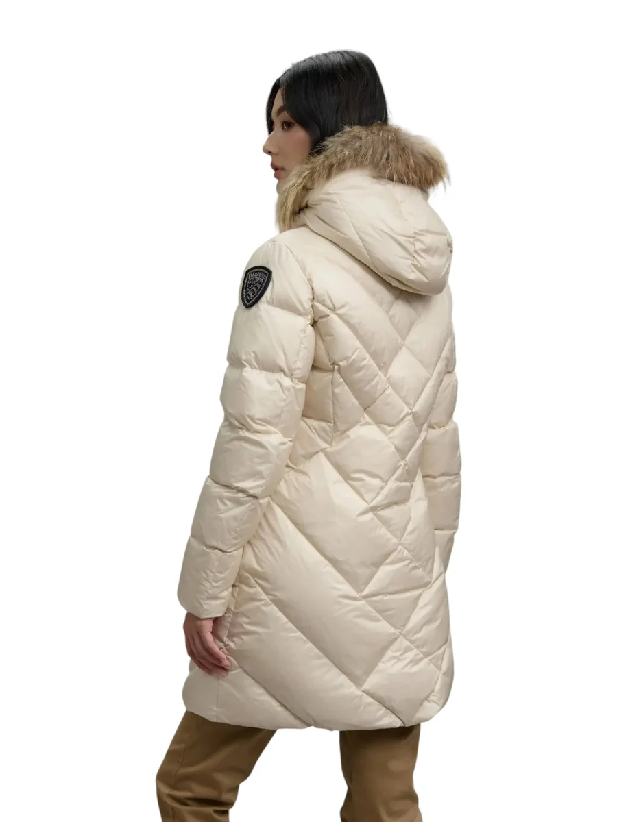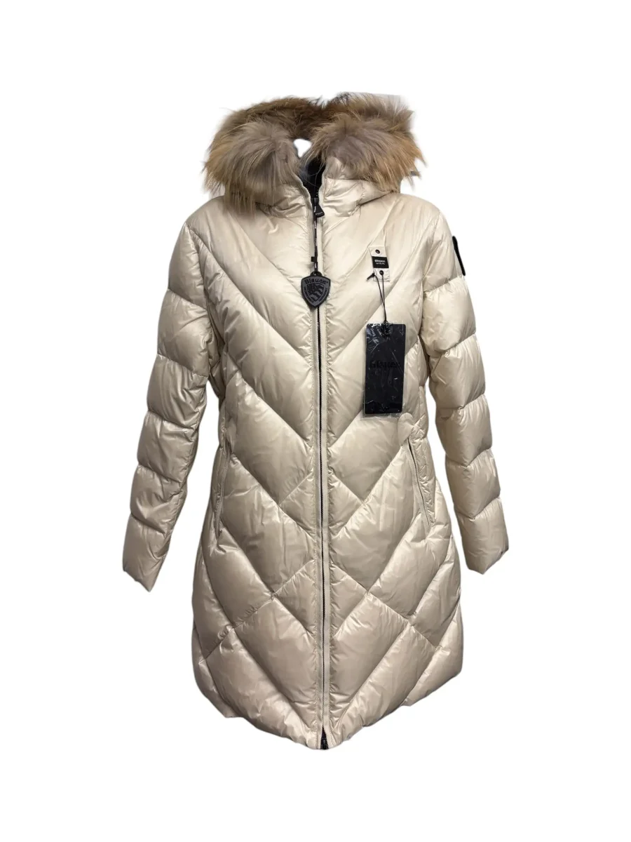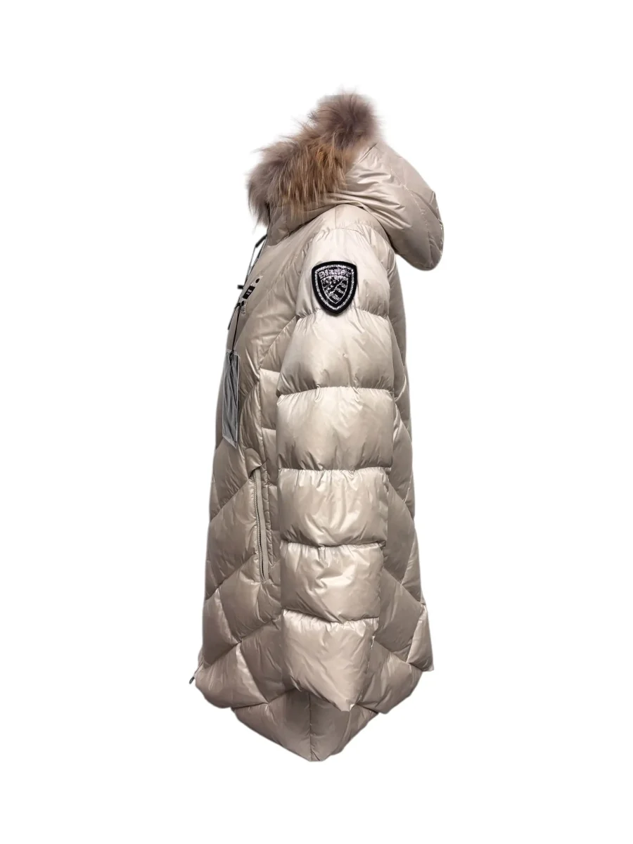 Blauer – Piumino lungo panna donna con bordo in pelliccia