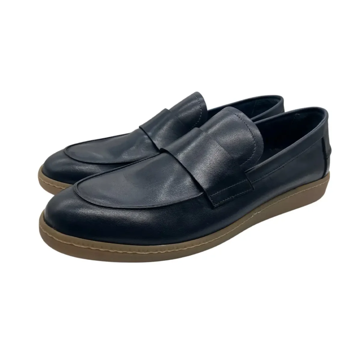 Mocassini in pelle blu con suola in gomma antiscivolo cucita. Interni in pelle e scamosciato, soletta in pelle. senza scatola originale.