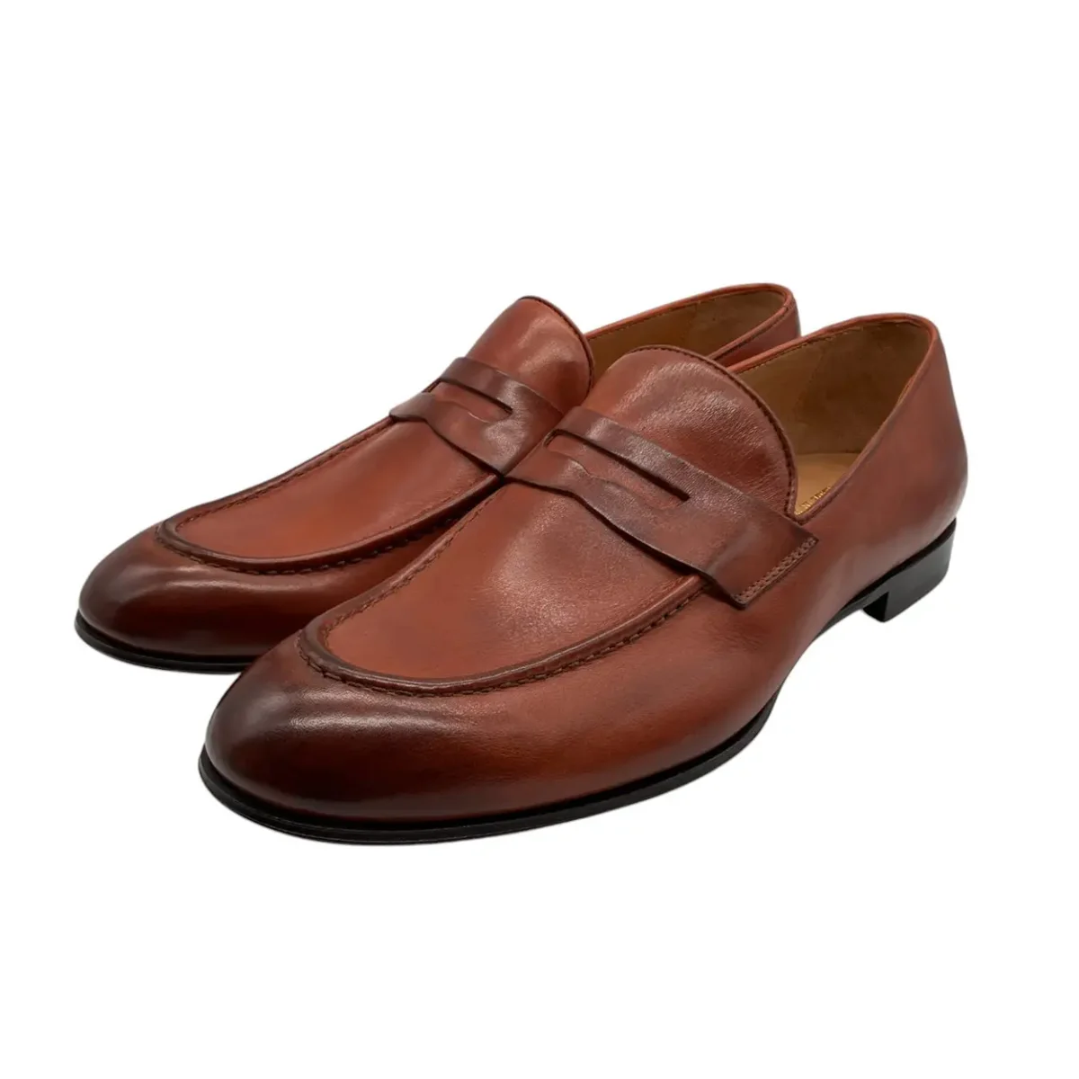 Brecos – EU/42 – Mocassini in pelle marrone tamponato