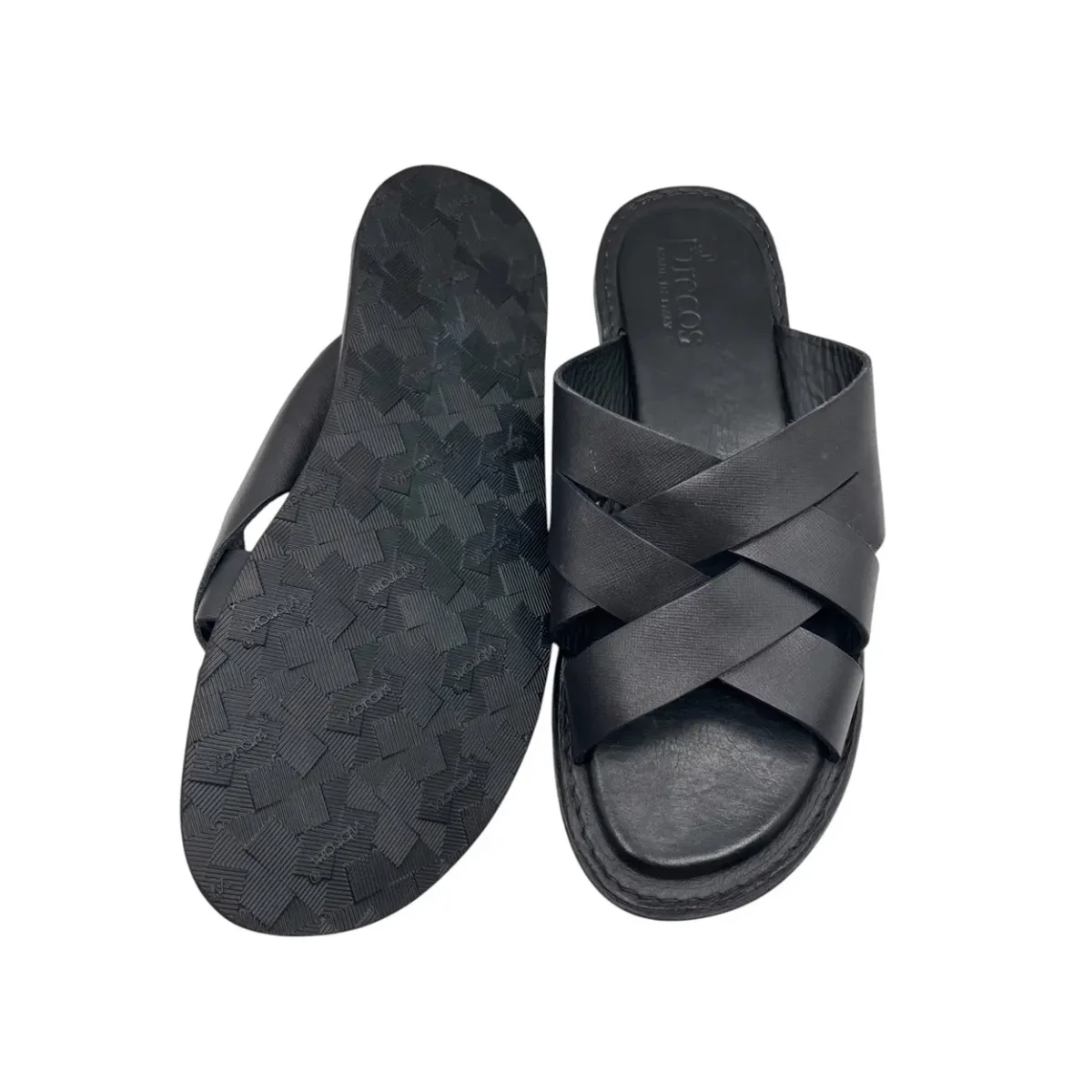 Brecos – EU/42 – Sandali piatti in pelle saffiano nero Capri 11938
