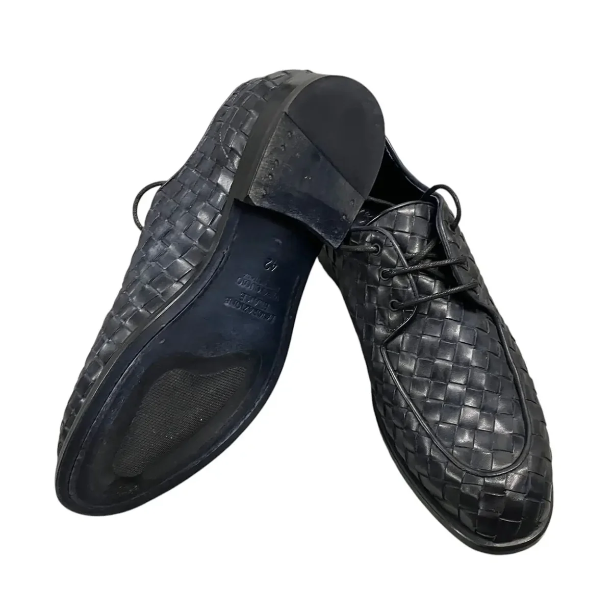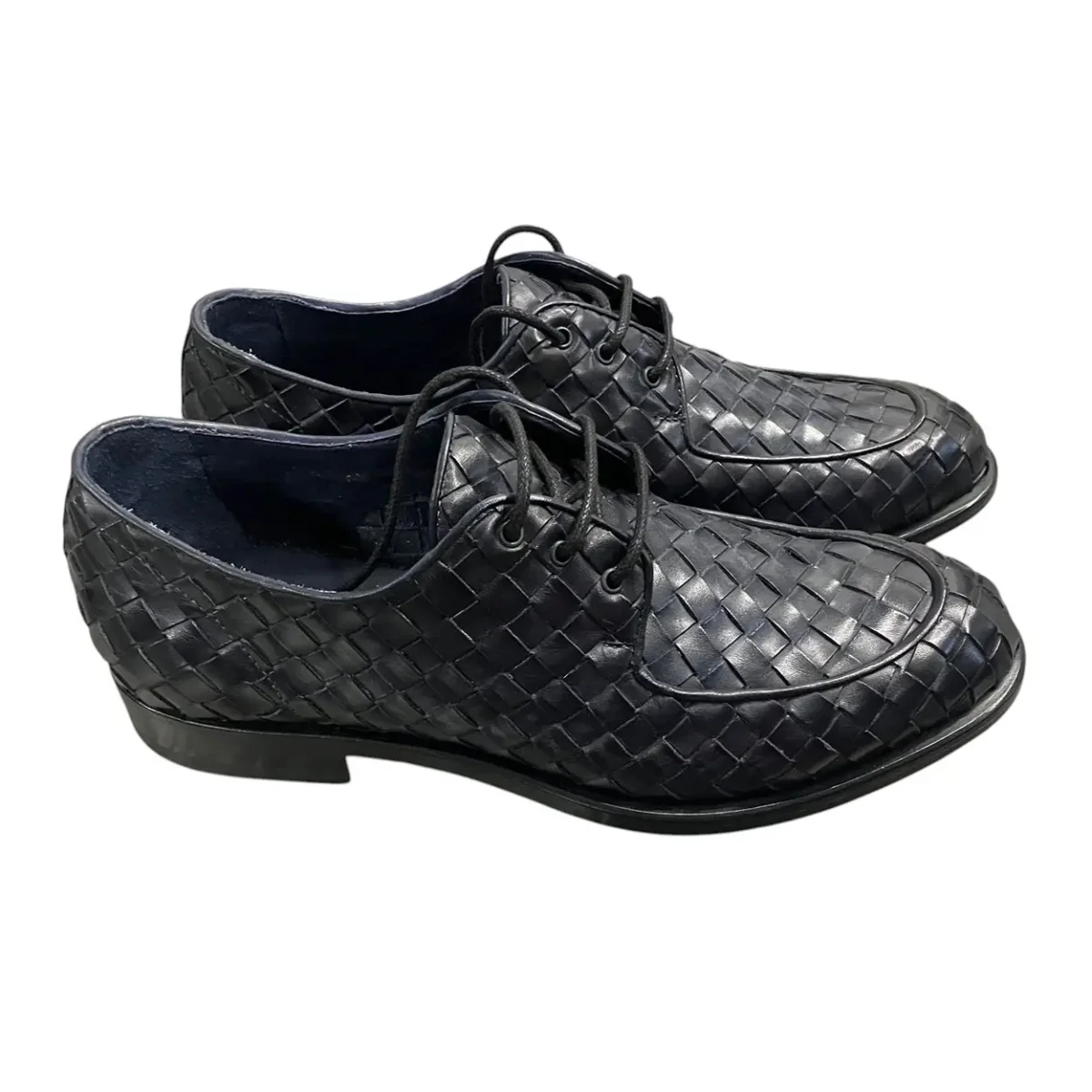 Brecos – EU/42 – Scarpe derby in pelle intrecciata blu scuro con lacci