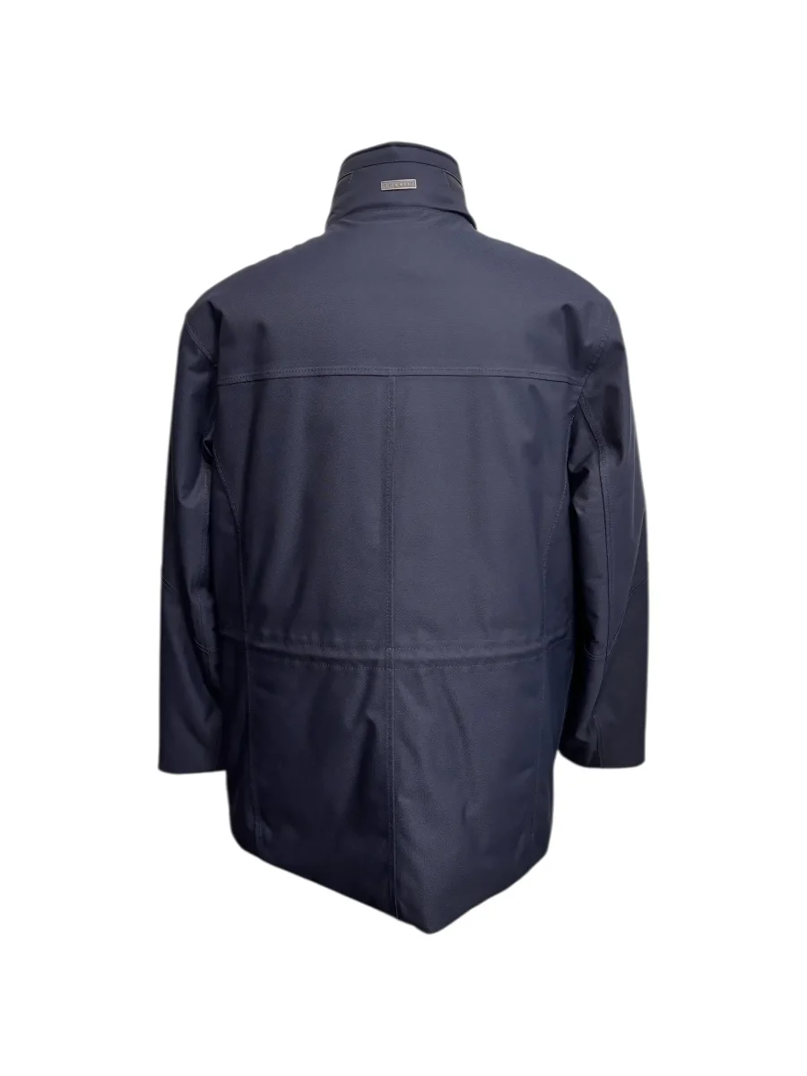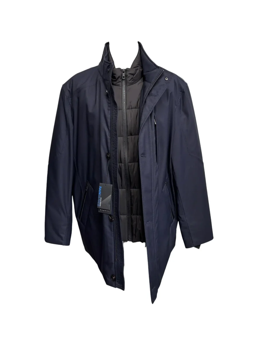 Giacca da uomo blu navy con pettorina. Design moderno ed elegante, ideale per affrontare la stagione fredda con stile. Il modello presenta una struttura a doppio strato: esterno in tessuto tecnico liscio e resistente, interno con pettorina imbottita e trapuntata removibile, che garantisce comfort termico e versatilità . Il collo alto protegge dal vento e dal freddo, mentre la chiusura frontale con zip e bottoni assicura una vestibilità pratica e sicura. Le tasche laterali con zip offrono funzionalità e sicurezza per gli oggetti personali. Il taglio è regolare, pensato per un look curato ma confortevole, adatto sia all’uso quotidiano che a…