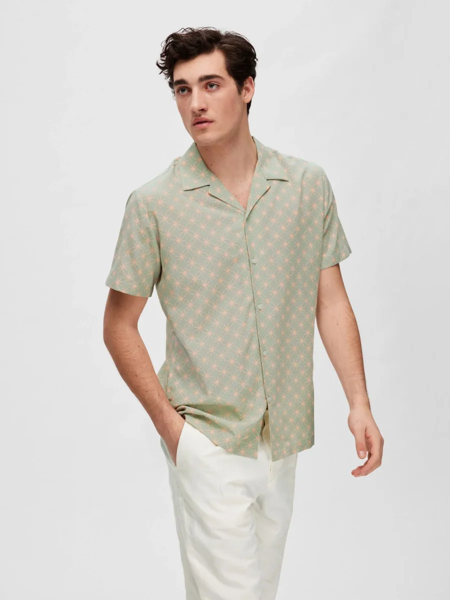 Realizzata in una miscela di cotone biologico traspirante e fibre innovative e piรน sostenibili, questa sobria camicia, con il suo colletto festivo e le fresche maniche corte, diventerร sicuramente un punto fermo quest’estate. Sia che tu scelga la versione semplice o stampata di questo capo, ti consigliamo di abbinare un paio di pantaloni chino affusolati e dei mocassini in pelle, completando il look con un cappello a secchiello per proteggerti dal sole.