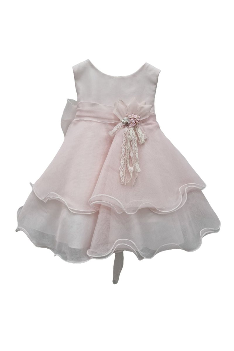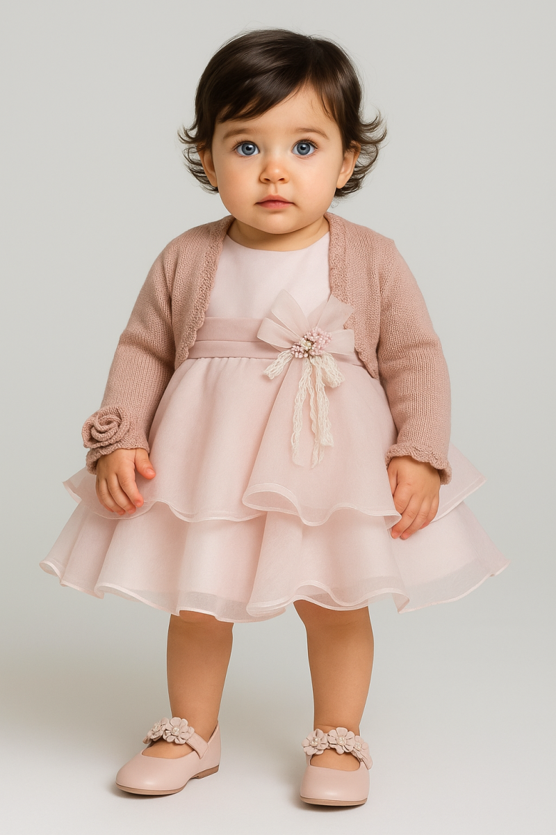 Abito ● A balze ● Fascia in vita regolabile ● Spilla in vita con fiori ● Chiusura con zip ● Vestibilità: slim ● Lavaggio 30° ● Composizione: 63% Algondòn – 37% Poliestere
