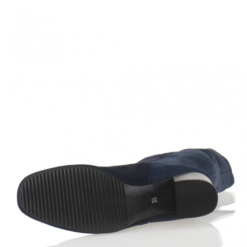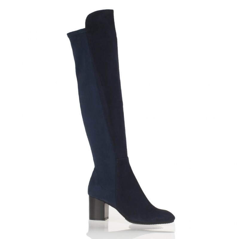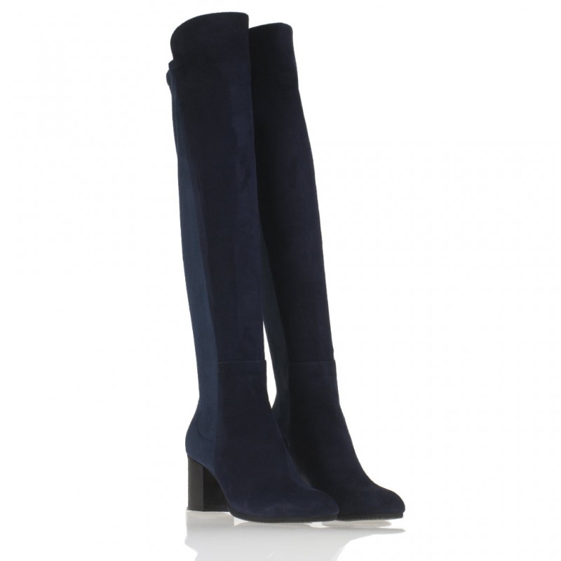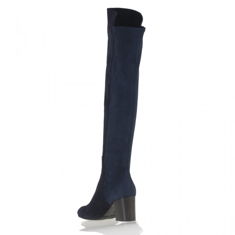 Cervone Stivale Camoscio Blu Sopra Ginocchio Tacco Medio