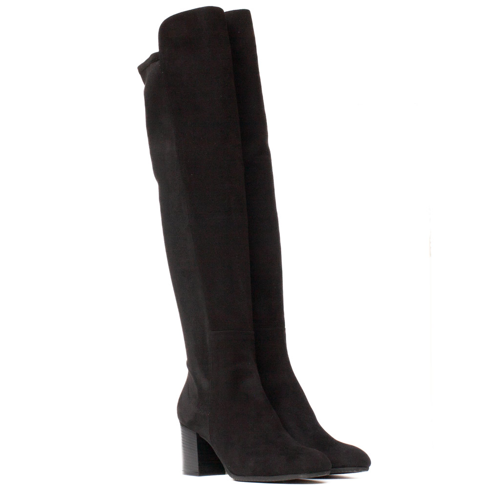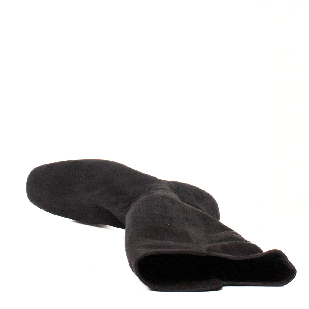 Cervone Stivale Camoscio Nero Sopra Ginocchio Tacco Medio