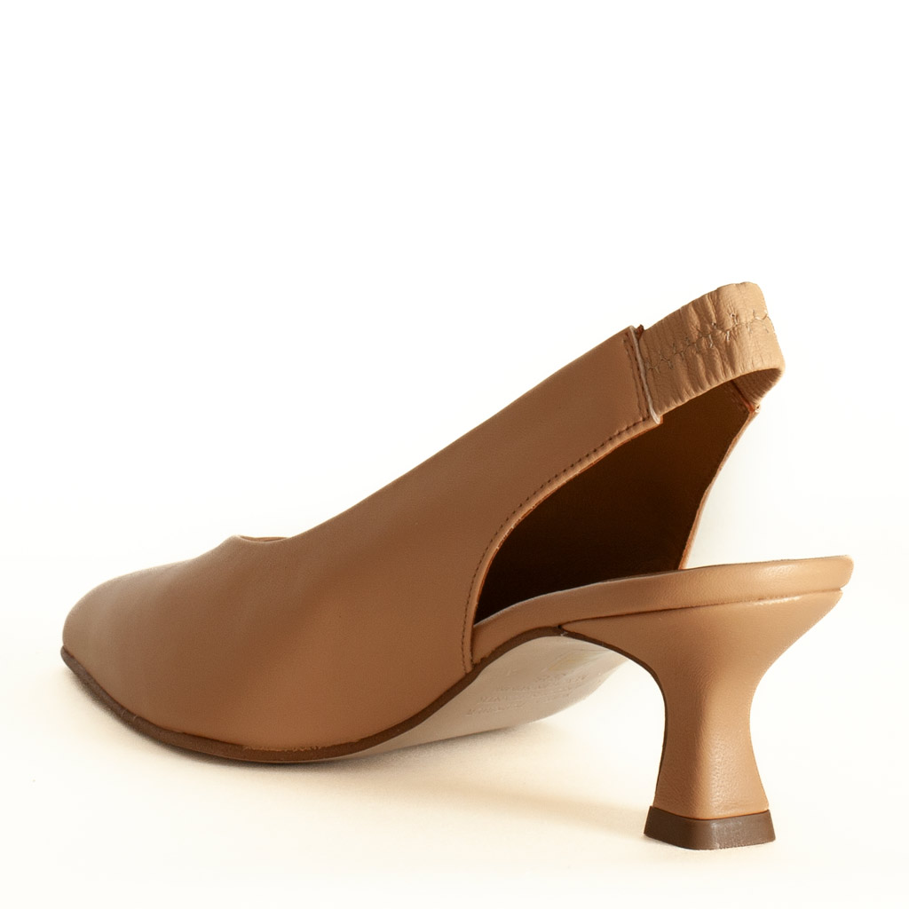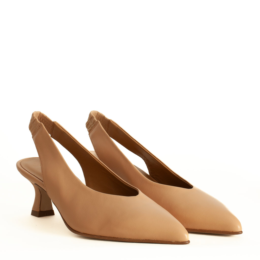 Design avvolgente della calzatura beige con tacco