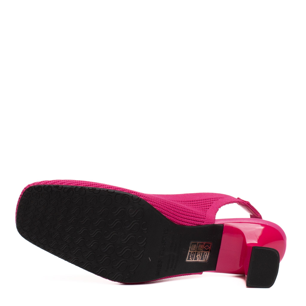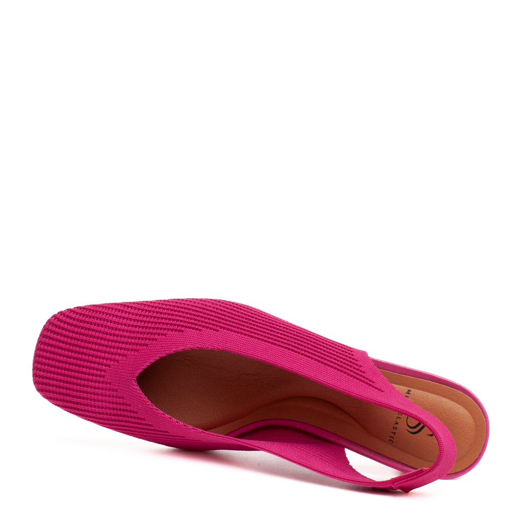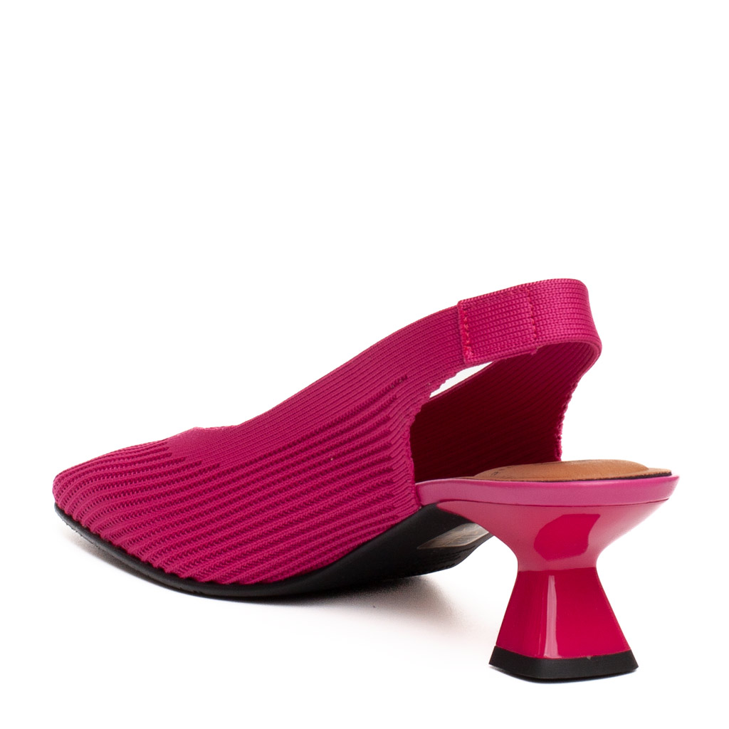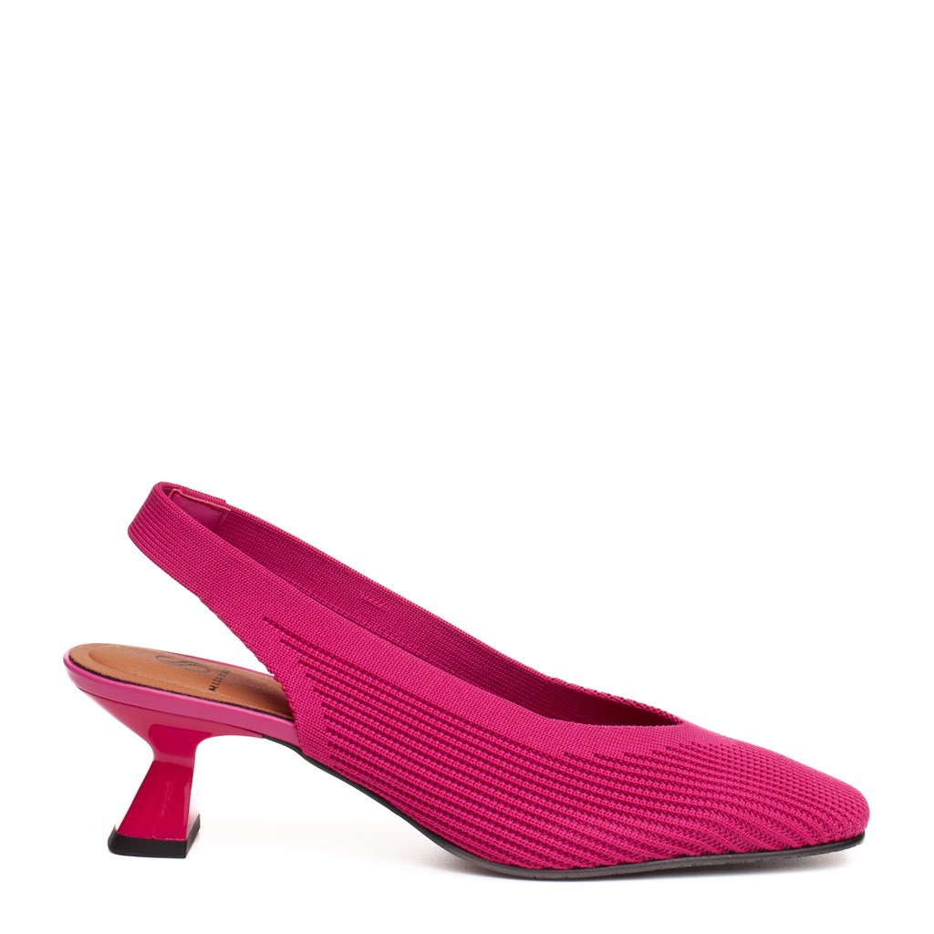 Scarpa aperta dietro con tacco, realizzata in tessutoย eco-elastico camel, ha la punta quadrata e la scollatura a V. Soletta in tessuto antibatterico con cuscinetto morbido. Suola in gomma. Realizzato in Spagna.