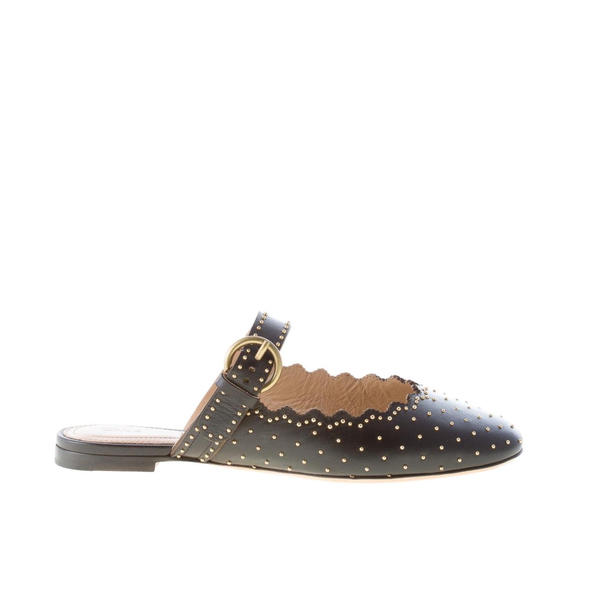 CHLOE’ donna sabot Lauren in nappa NERO con borchiette dorate e cinturino