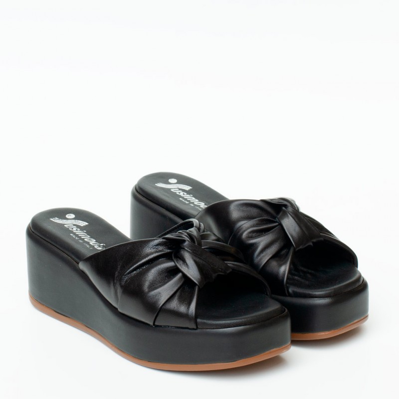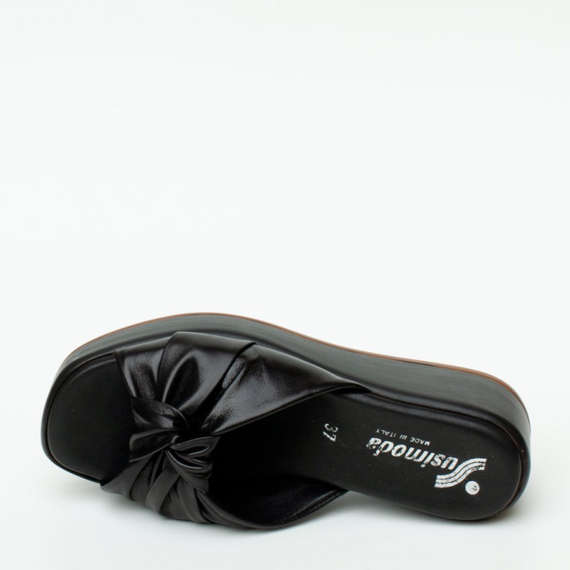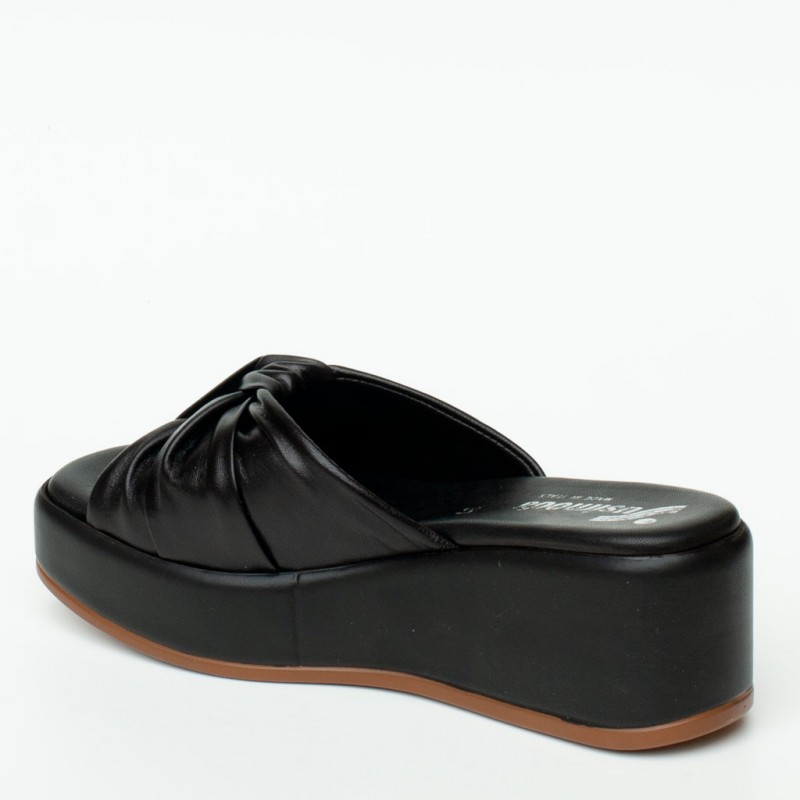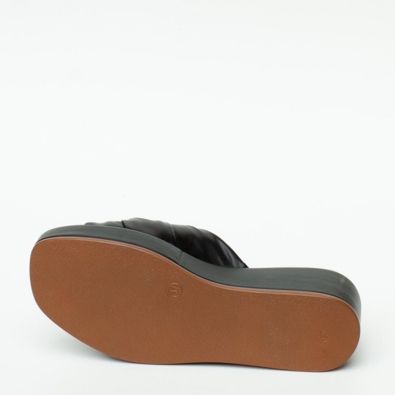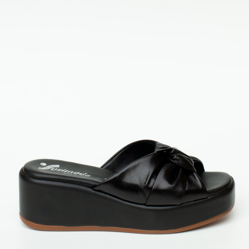 Ciabattaย in pelle con zeppa. Fodera in pelle e suola in gomma. Altezzaย zeppaย 5 cm. Made inย Italy.