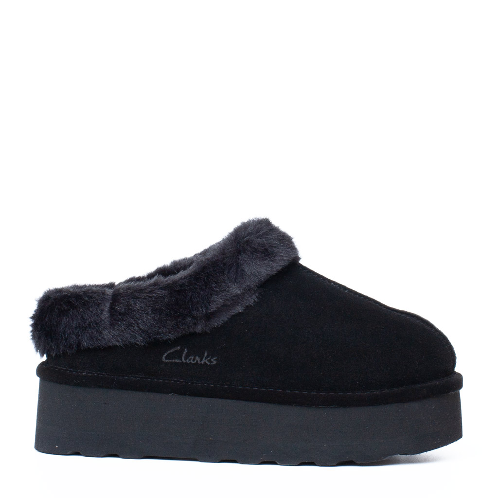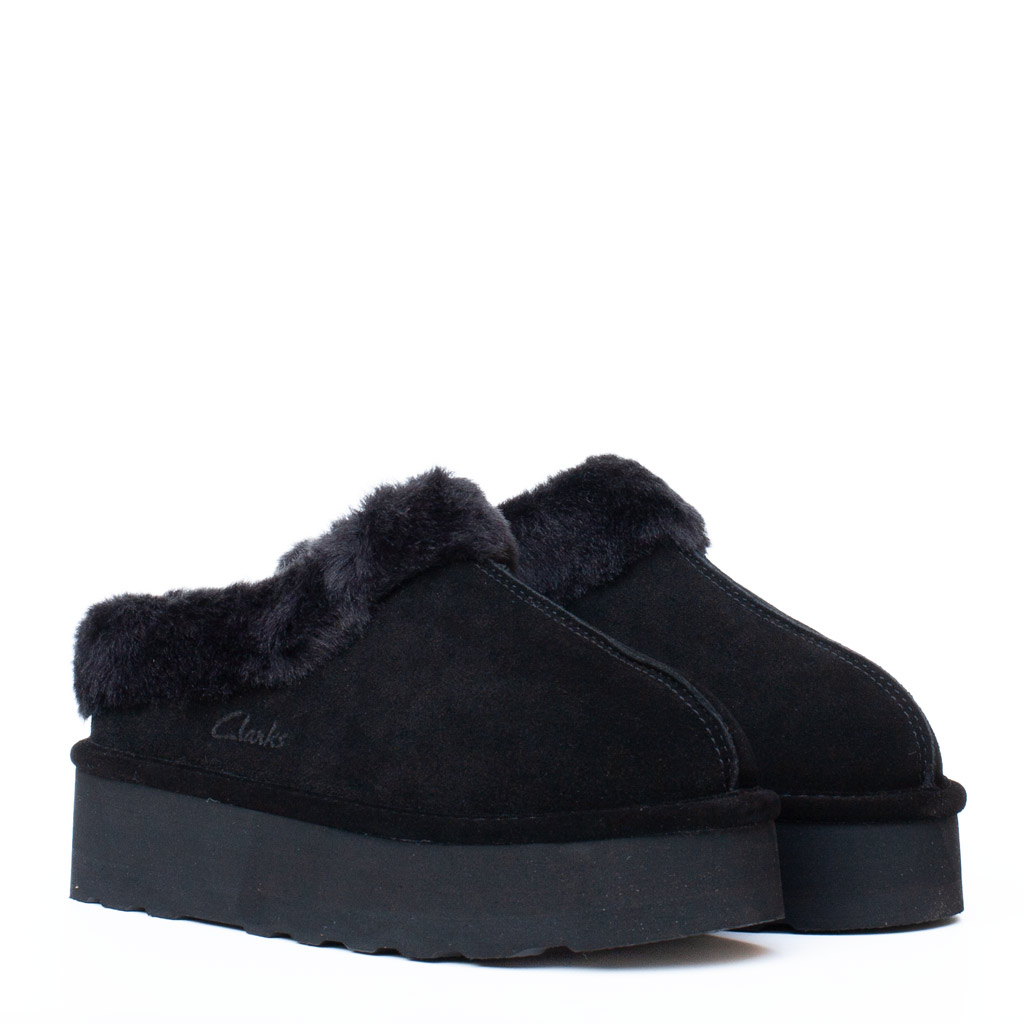 La ciabatta platform suede nero di Clarks รจ l’equilibrio perfetto tra comfort e stile di tendenza. Questa calzatura da casa, o da indossare per un look casual, presenta una tomaia in camoscio color cognac e un’accogliente fodera in pelliccia sintetica nero. La suola platform robusta aggiunge un tocco moderno, assicurando un’aderenza sicura. Il design รจ versatile e ideale per coccolarsi nelle giornate fredde, mantenendo al contempo un aspetto sofisticato.