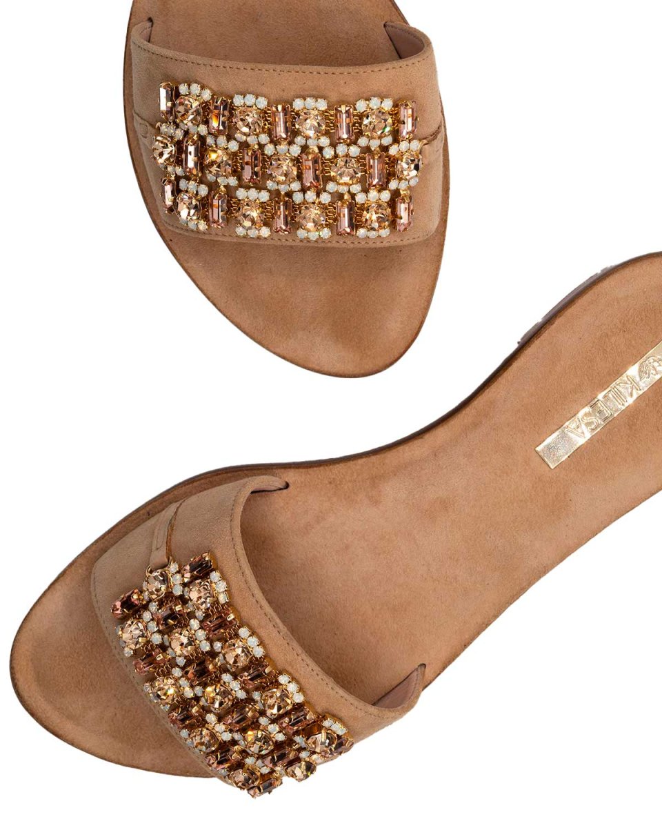 Comfortably chic! Materiali fascia: pelle camoscio, Swarovsky Made in Italy Tomaia in pelle Cliccando sul menu a tendina “Taglia”, รจ possibile visionare i numeri disponibili