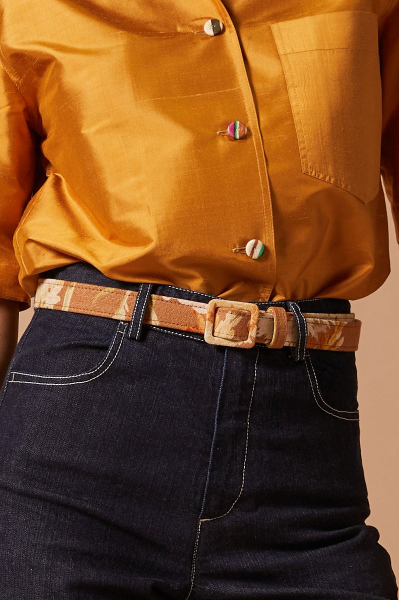 Cintura in canvas di cotone a fiori su fondo nocciola