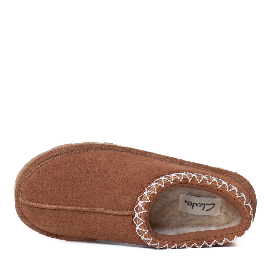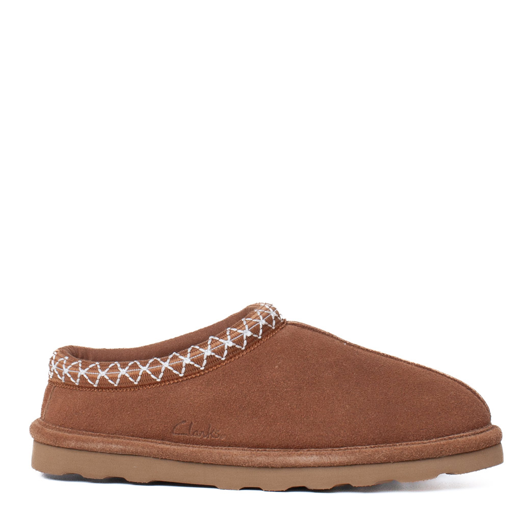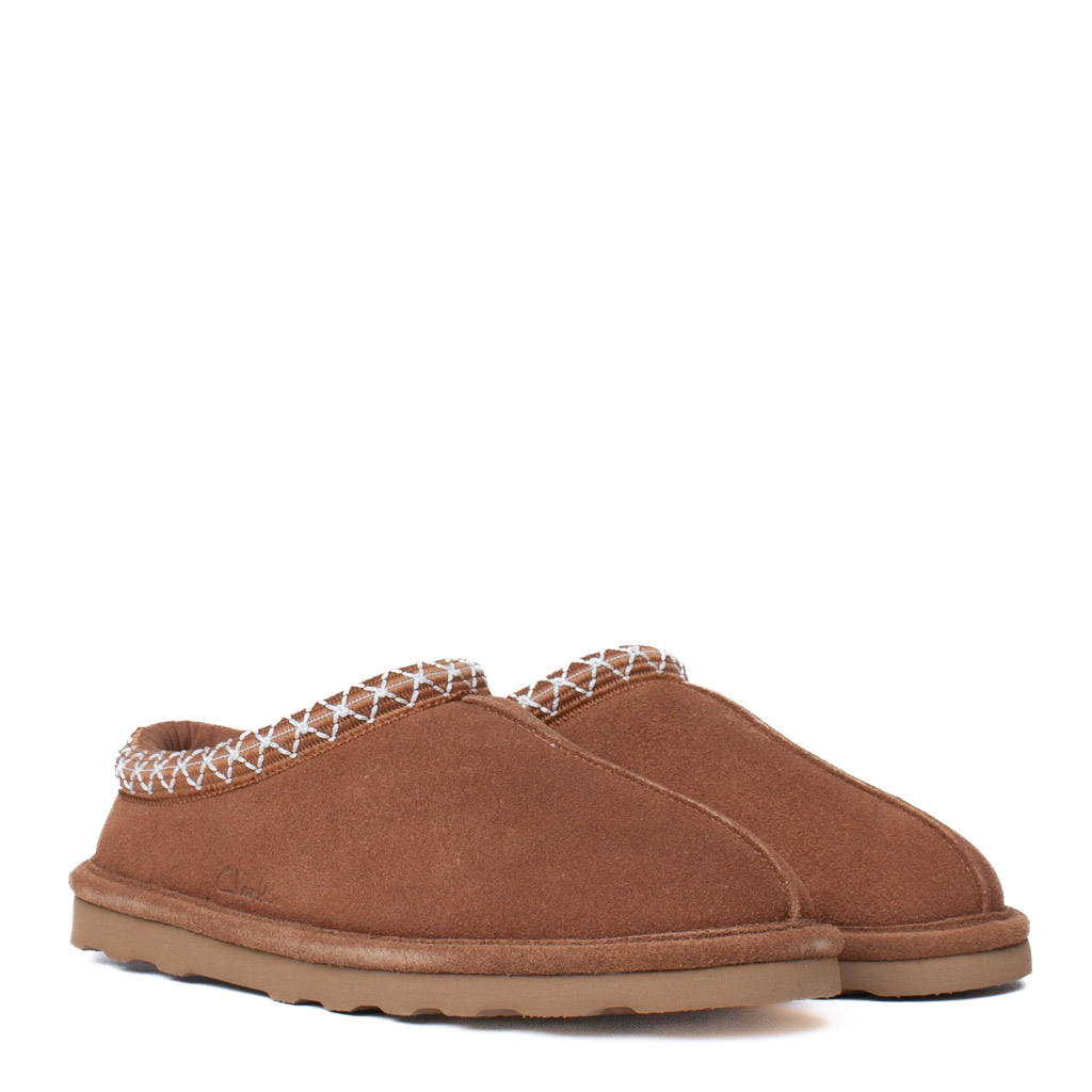 Clog Clark Cognac in Suede con Bordo Decorativo