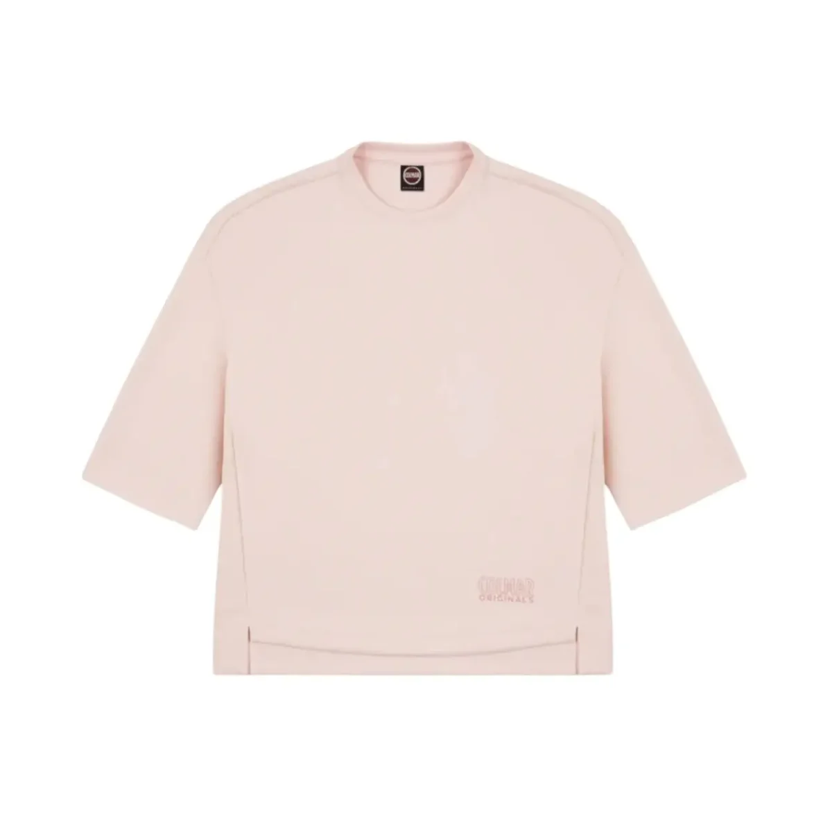 Felpa girocollo rosa Donna Colmar con stampa glitter sul fondo sinistro, spalla scesa e parte posteriore leggermente piรน lunga. Manica lunghezza avambraccio. Tessuto in morbido cotone modal, dalla mano setosa. Confortevole e versatile si abbina a look sportivi e Urban. Vestibilitร : Regular-fit /Oversize