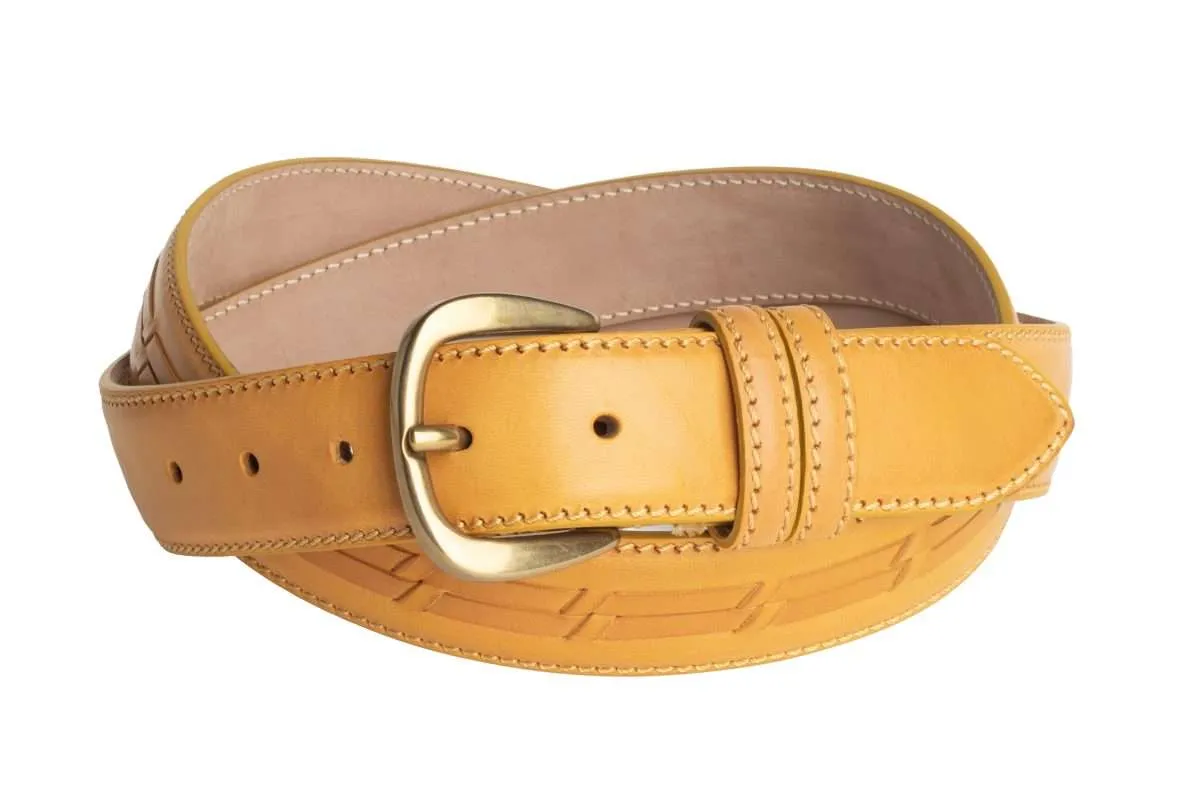 cuoio giallo con inserti su base cuoio nabuk