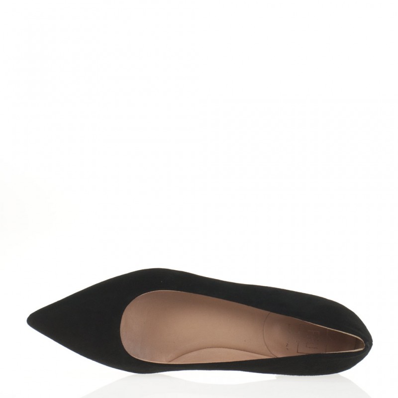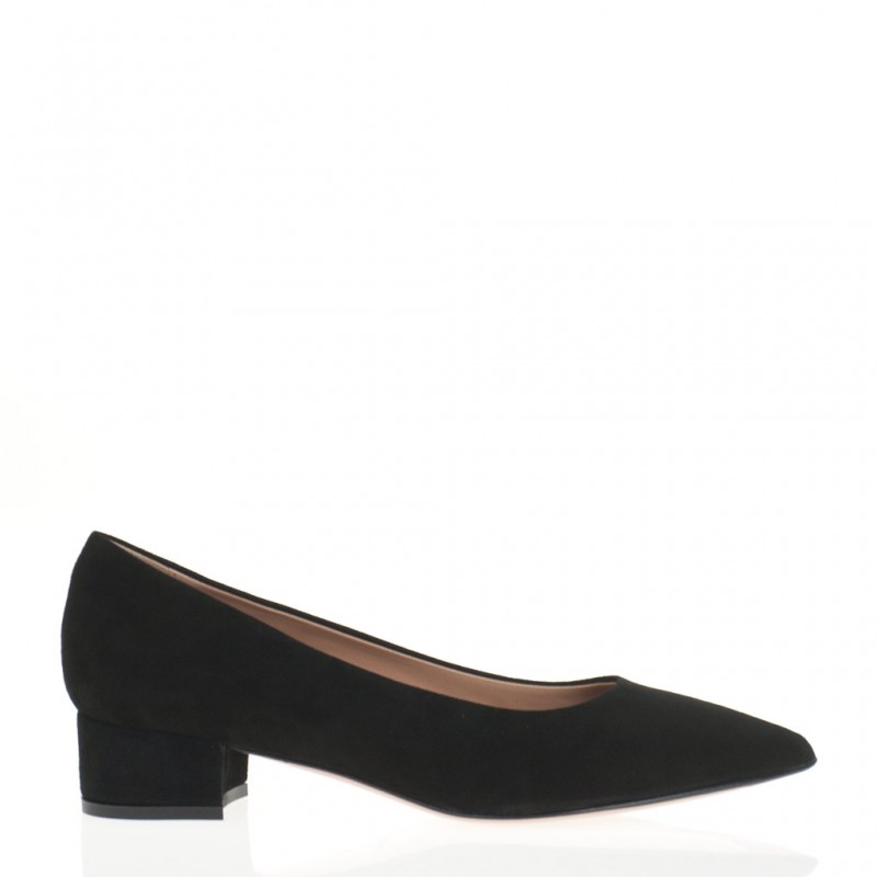 Scarpa in camoscio. Altezza tacco 3.5 cm. Fodera in pelle. Suola in cuoio e gomma. Made in Italy.