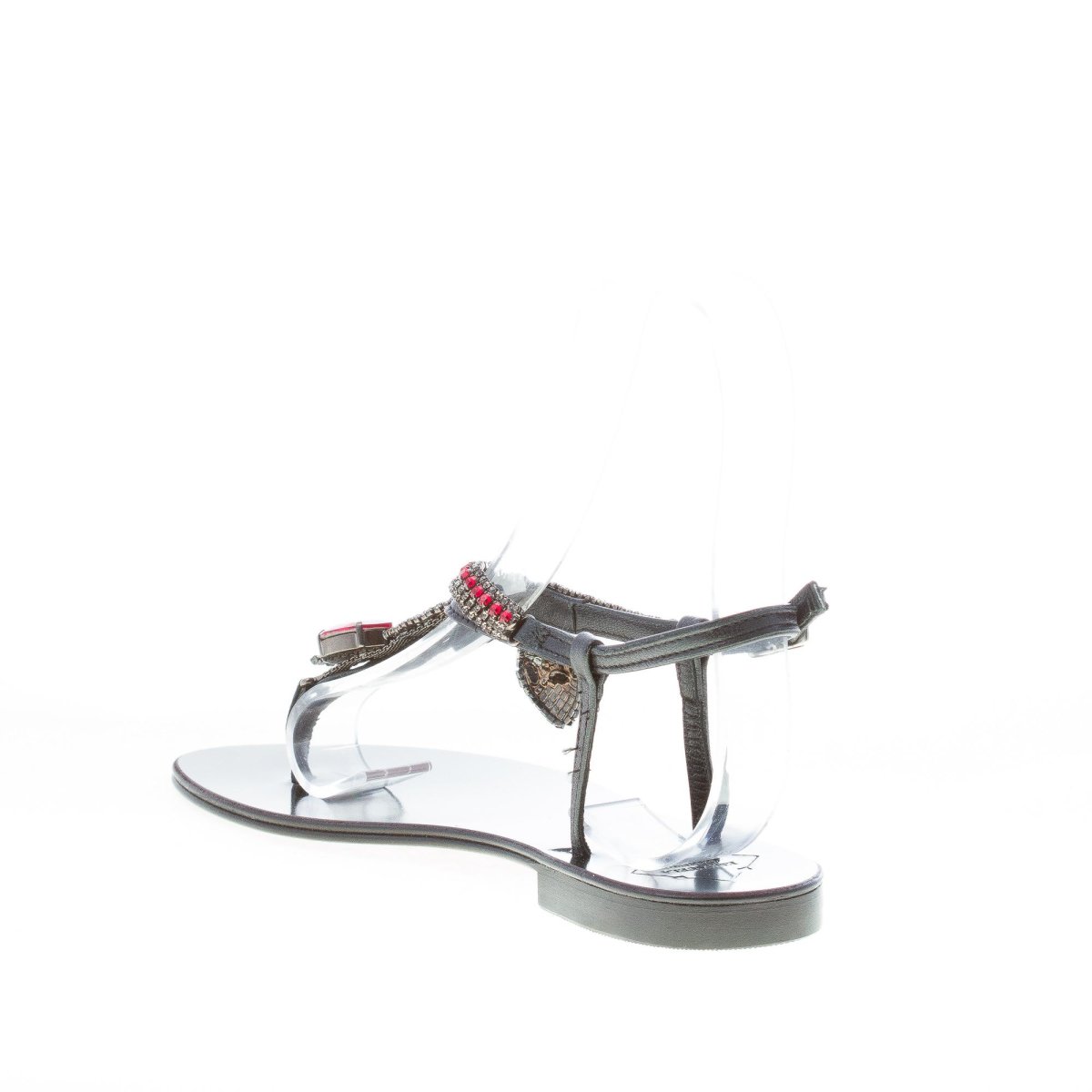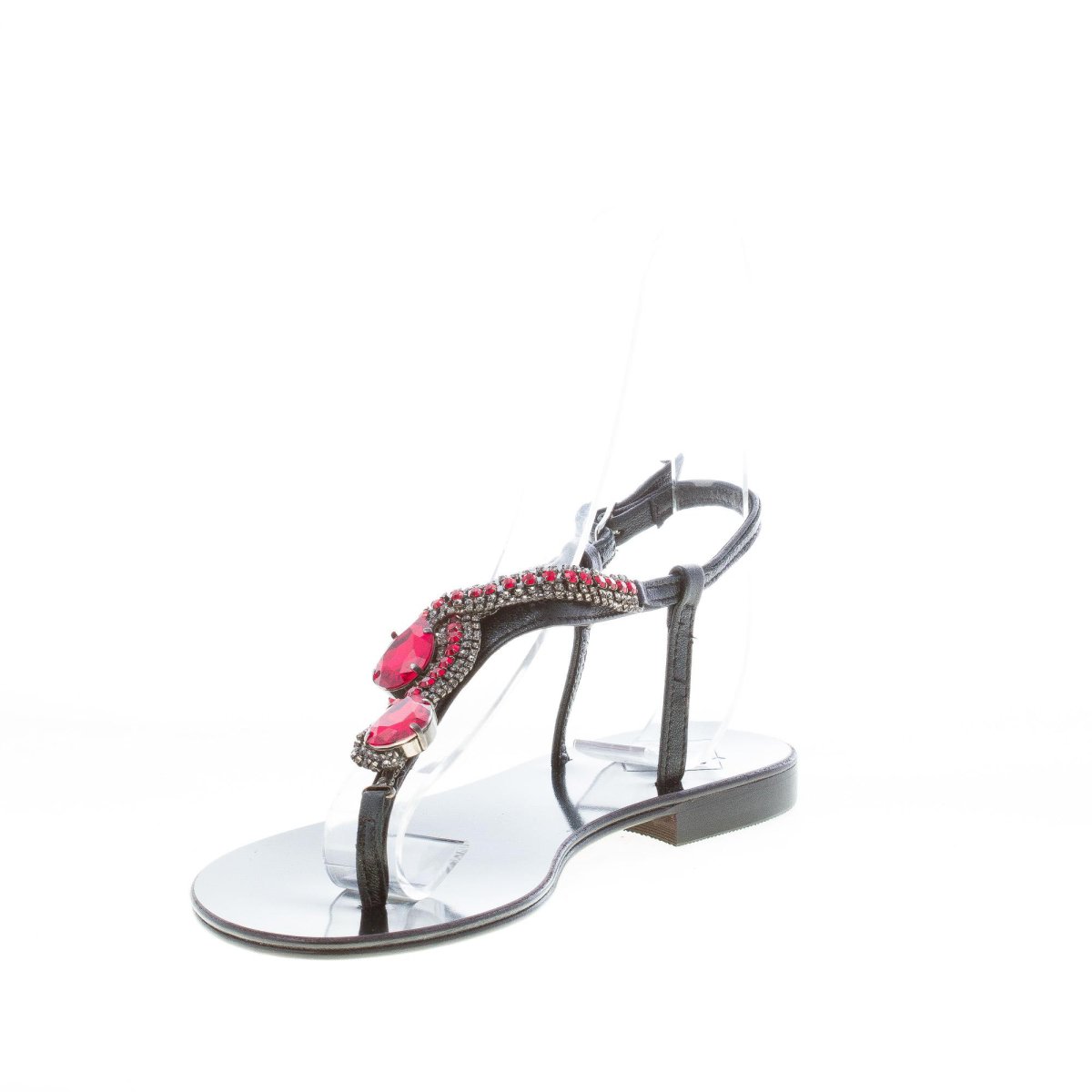 EMANUELA CARUSO donna sandalo basso infradito in pelle NERO con snake e pietre rosso. Tacco 1 cm