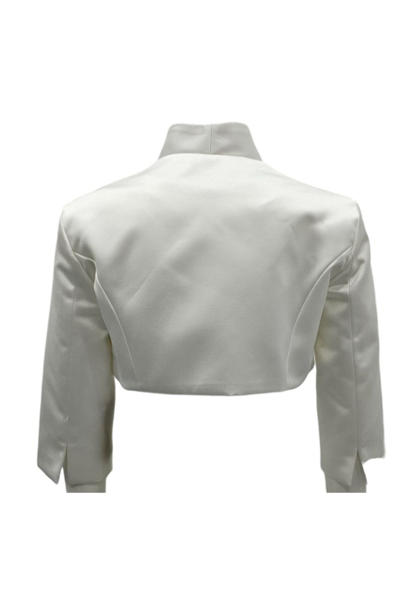 Per la cerimonia contemporanea, proposte romantiche e sofisticate realizzate con tessuti preziosi e dettagli accurati. Per completare il look, con un top o un abito smanicato, una giacca corta e stondata, con raffinati polsini e spacchetti laterali