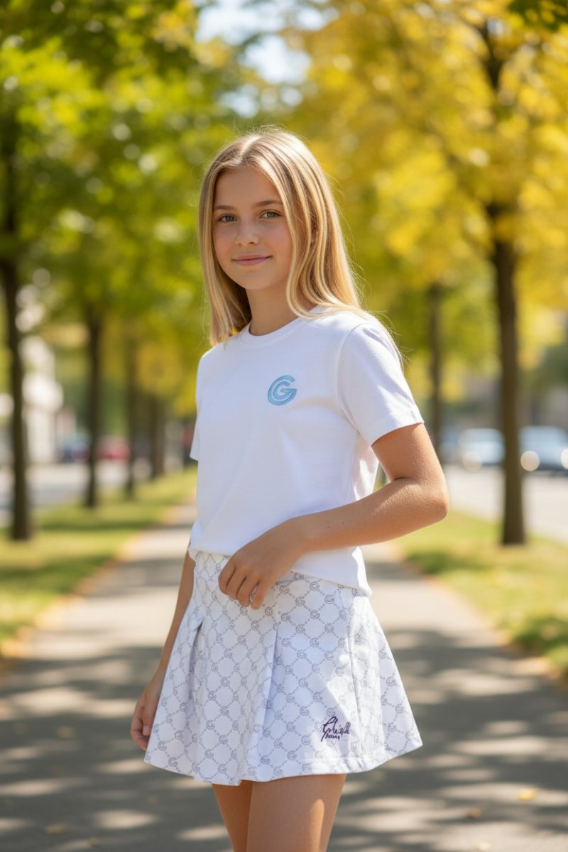 Gonna Monogram โ Vita elastica โ Pieghe morbide โ Logo glamour a sinistra Vestibilitร : Normale โ Composizione: 100% Cotone