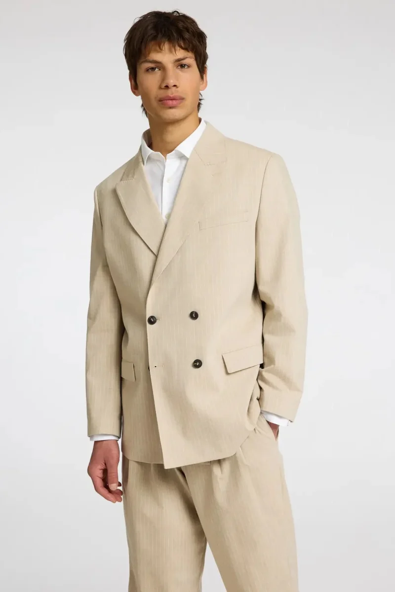 Sartoria realizzata da esperti, progettata per tradurre la nostra tradizione nordica in abiti eleganti per l’uomo moderno.– Tipo di prodotto: Blazer doppiopetto– Collo: Revers a lancia– Polsini: Polsini con bottoni– Chiusura: Chiusura con bottoni– Fodera: Semi-foderata– Dettagli extra: Spacco posteriore– Vestibilitร : Vestibilitร rilassata