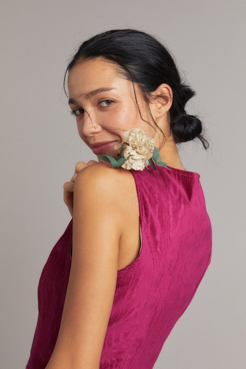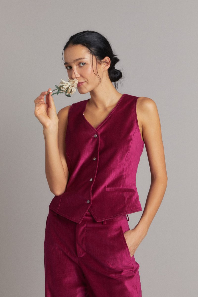 Gilet Annie in velluto moiré ciliegia