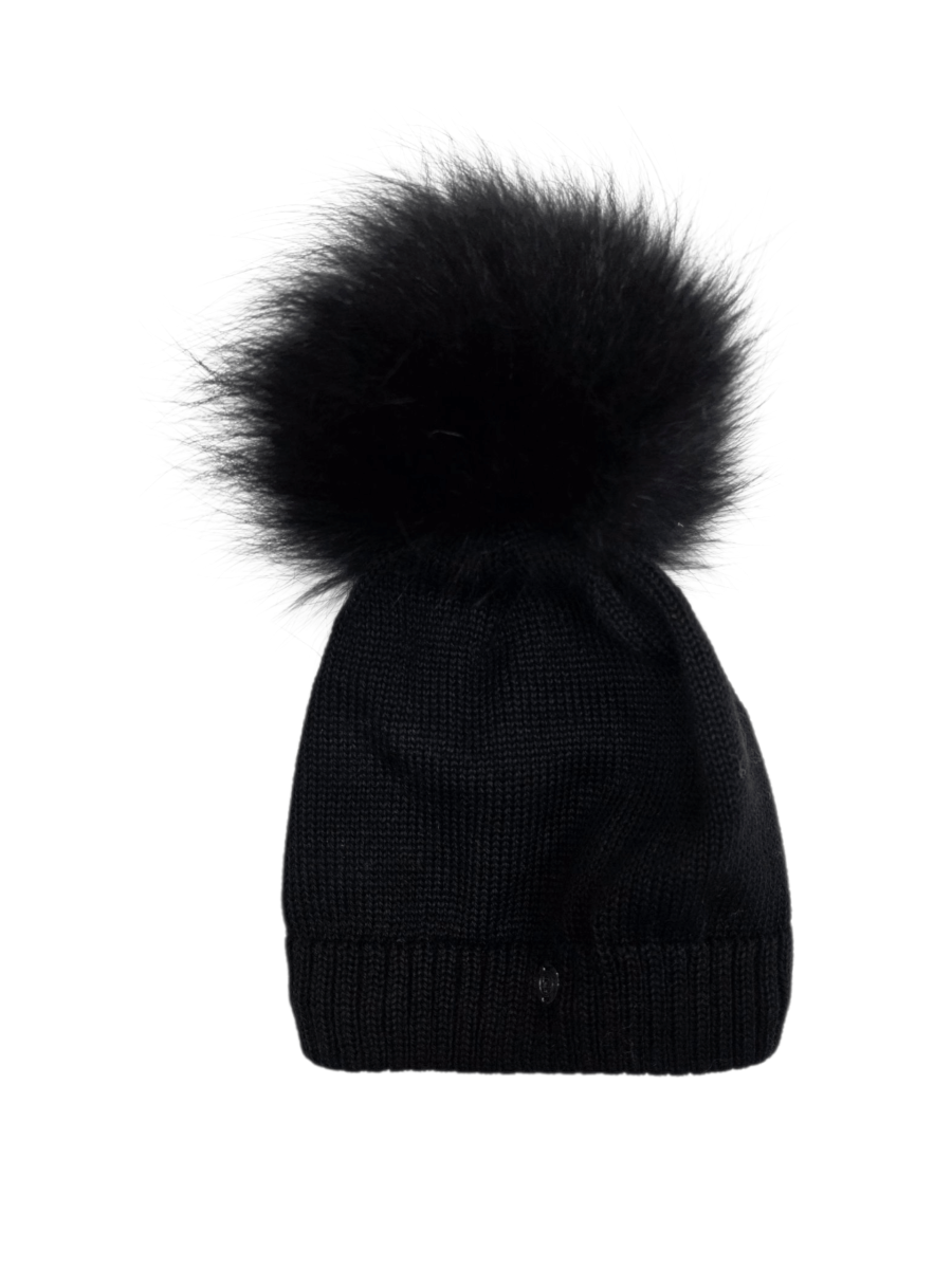 Cappello โ Con logo in acciaoio โ Pelliccia pon pon Mourmanski โ Senza Rispovto e foderato โ Composizione: 80% lana 20% Acrilico