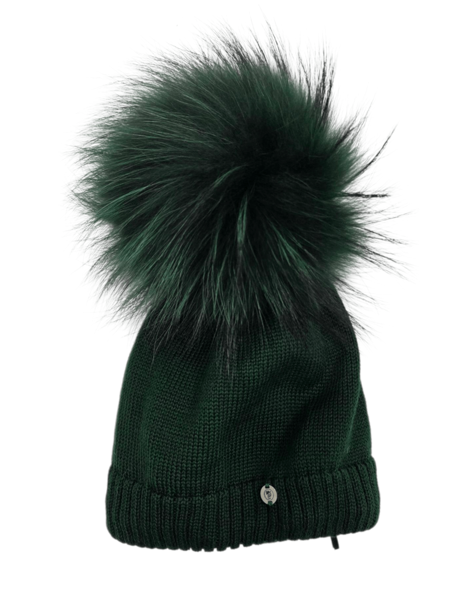 Cappello โ Con logo in acciaoio โ Pelliccia pon pon Mourmanski โ Senza Rispovto e foderato โ Composizione: 80% lana 20% Acrilico