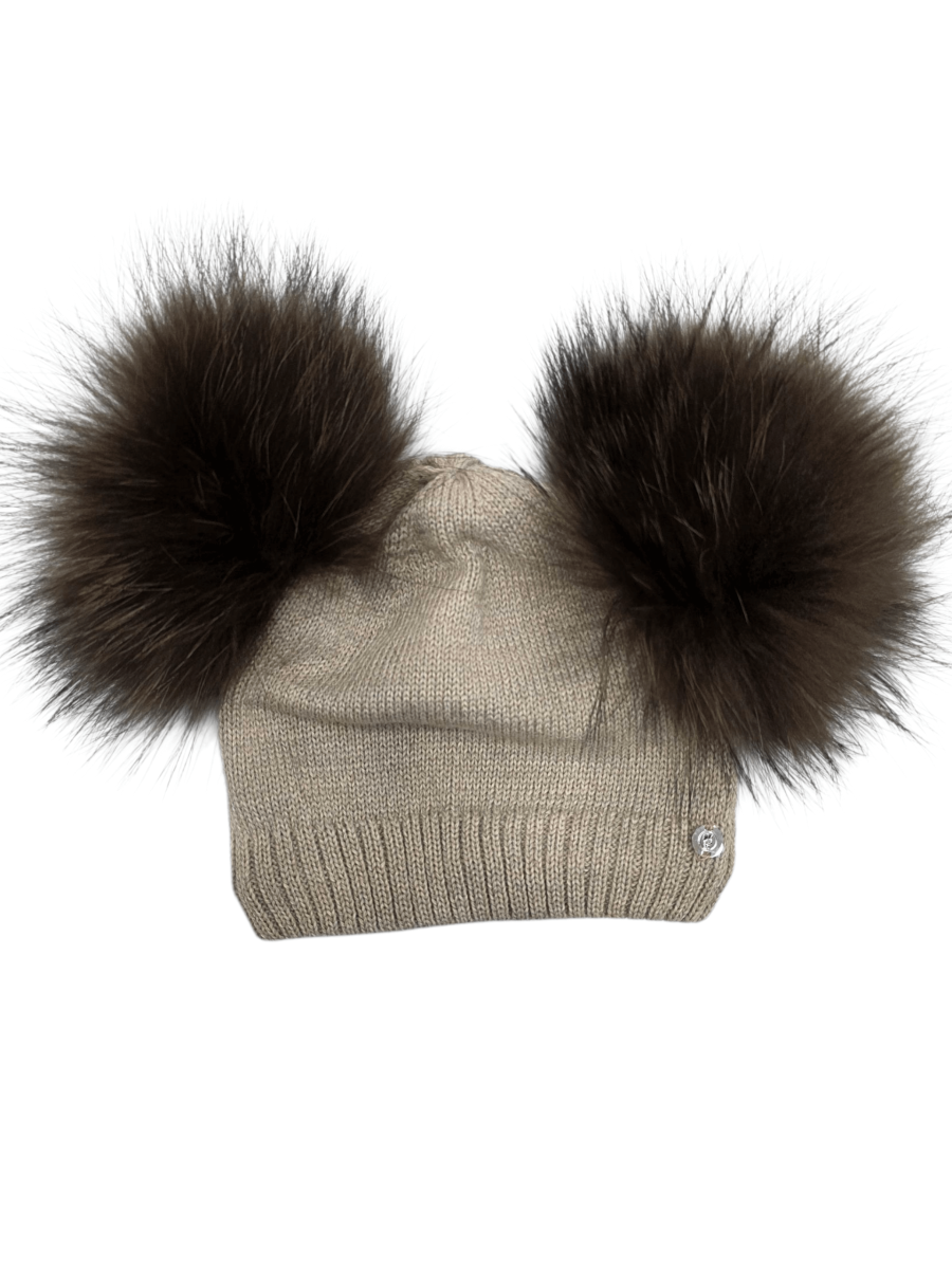 Cappello โ Con logo in acciaoio โ Pelliccia doppio pon pon Mourmanski โ Senza Rispovto e foderato โ Composizione: 80% lana 20% Acrilico