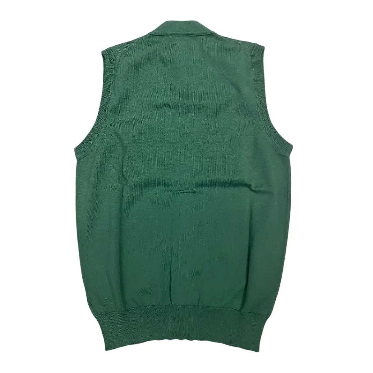 Cardigan smanicato in cotone filo di Scozia verde salvia (3435). Bottoni effetto perlato. Vestibilitร regolare.ย Style AI201.B03. Prodotto interamente in Italia.