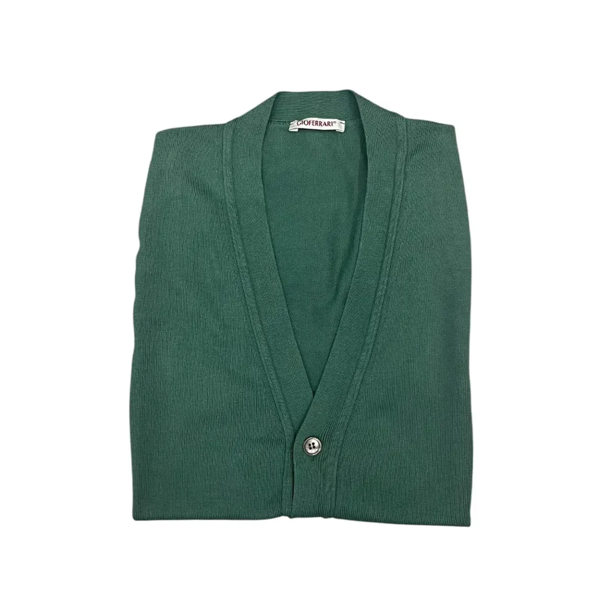 Gioferrari – Cardigan smanicato in cotone filo di Scozia verde salvia AI201.B03