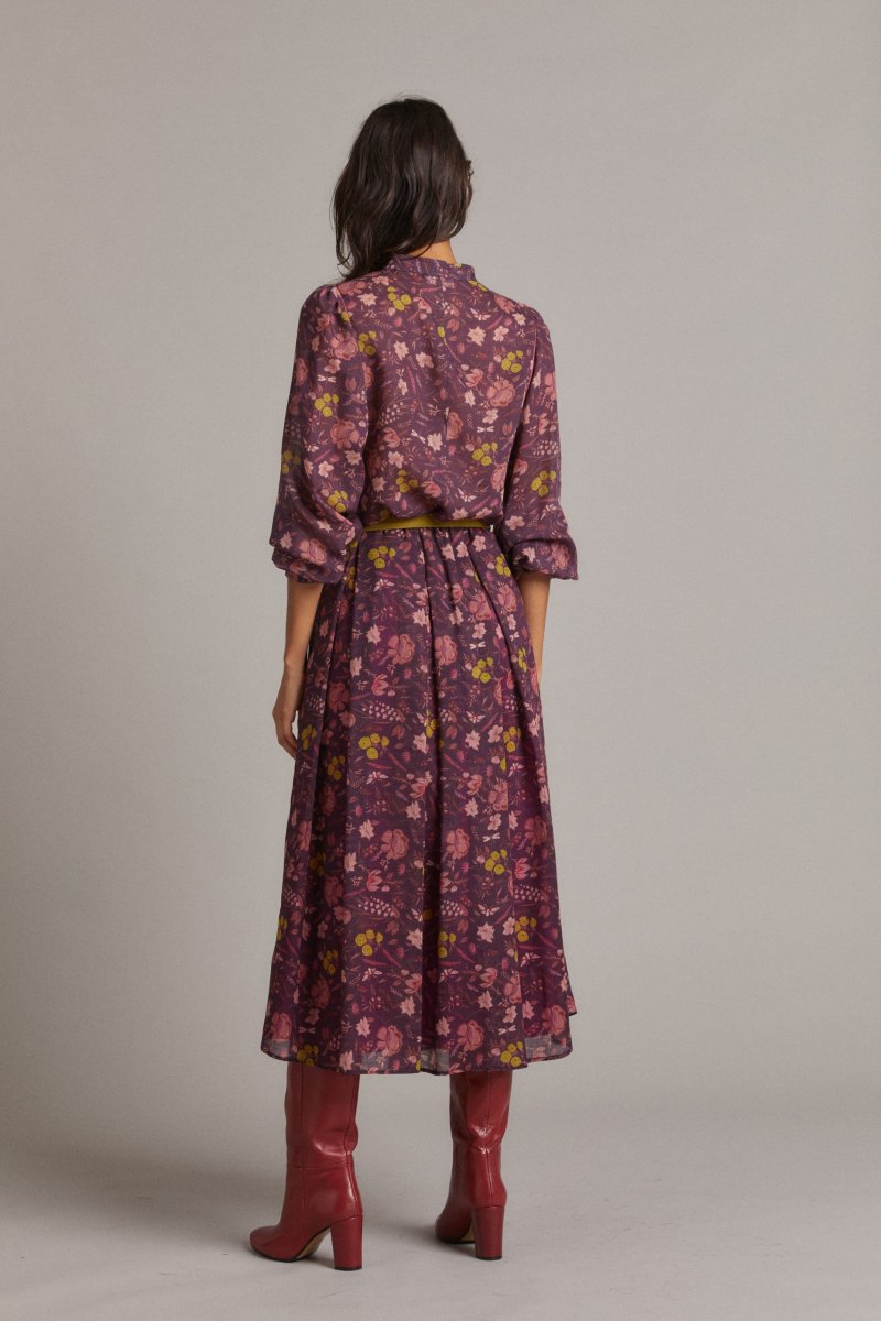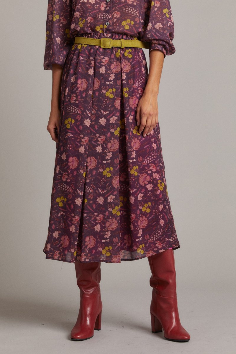 Gonna Greta in garza prugna a fiori