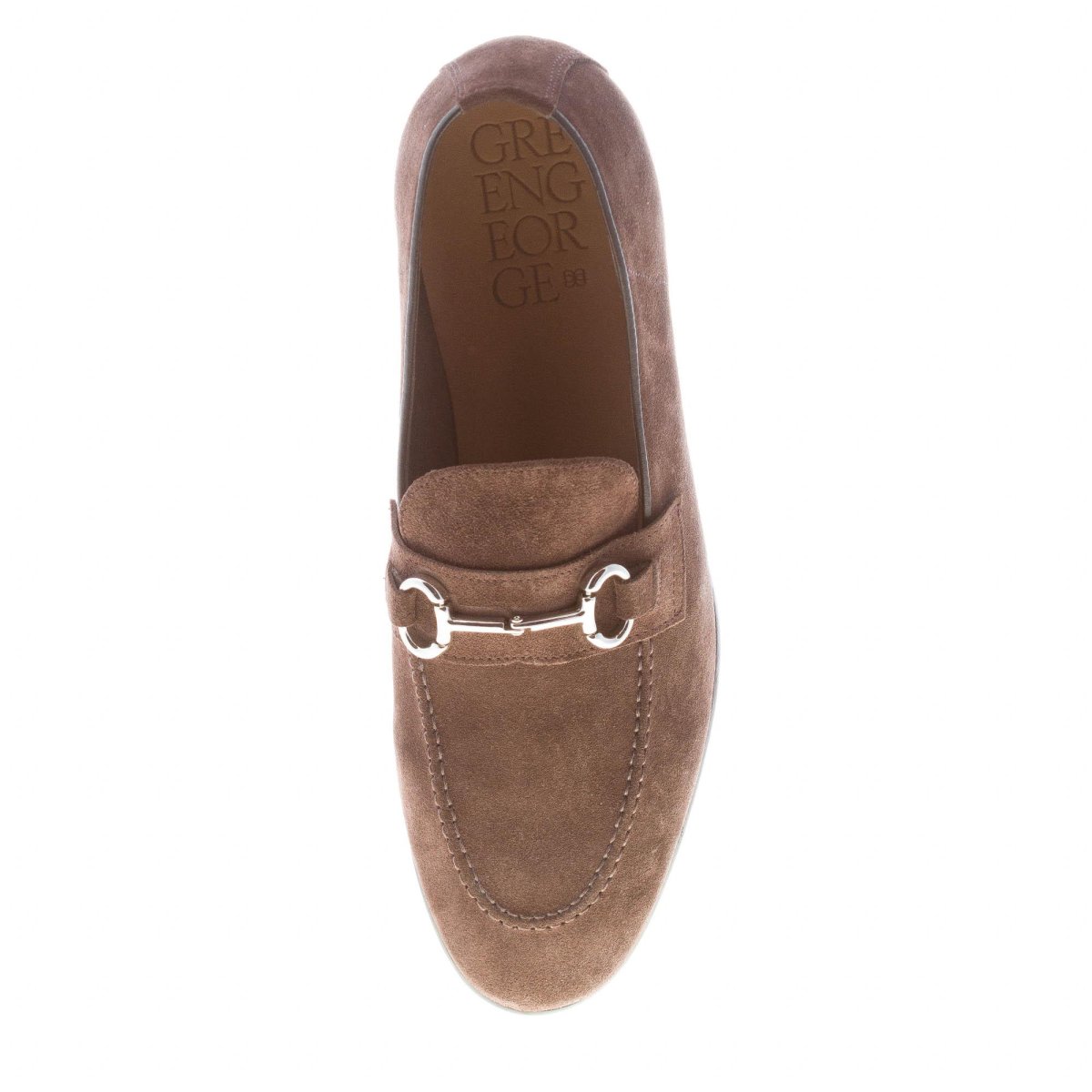GREEN GEORGE uomo mocassino in camoscio TESTA DI MORO con morsetto. Suola in cuoio