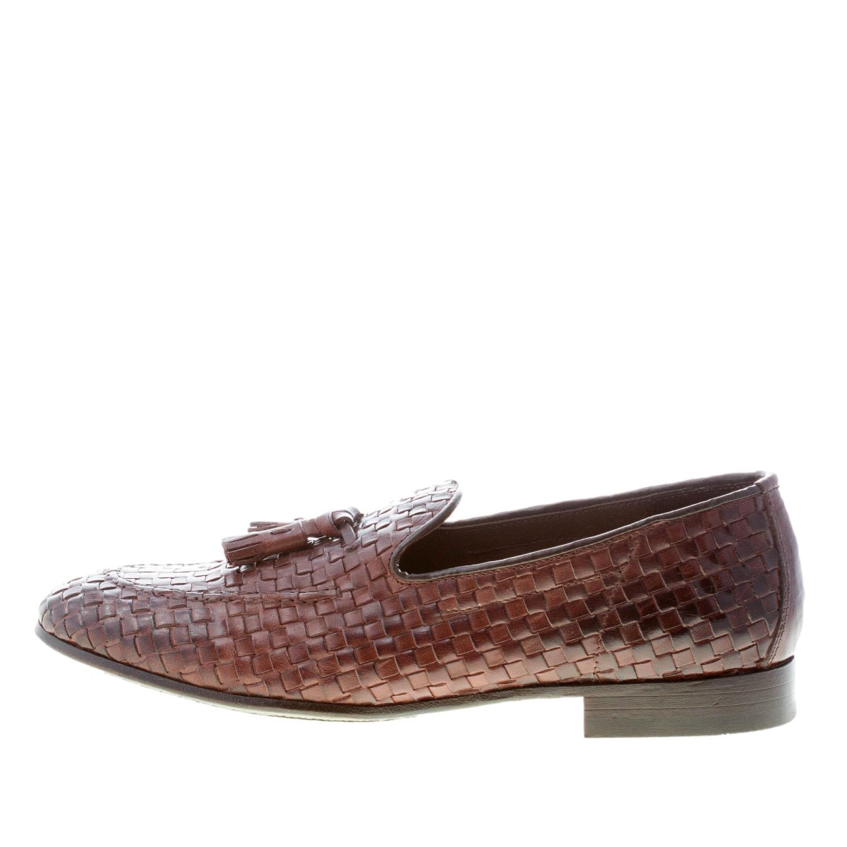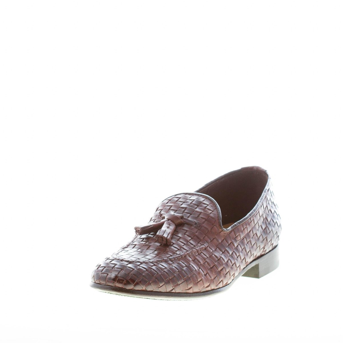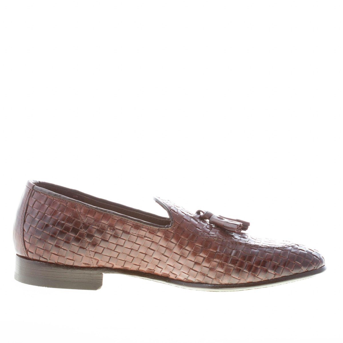 GREEN GEORGE uomo mocassino in pelle intrecciata TESTA DI MORO con nappine. Suola in cuoio