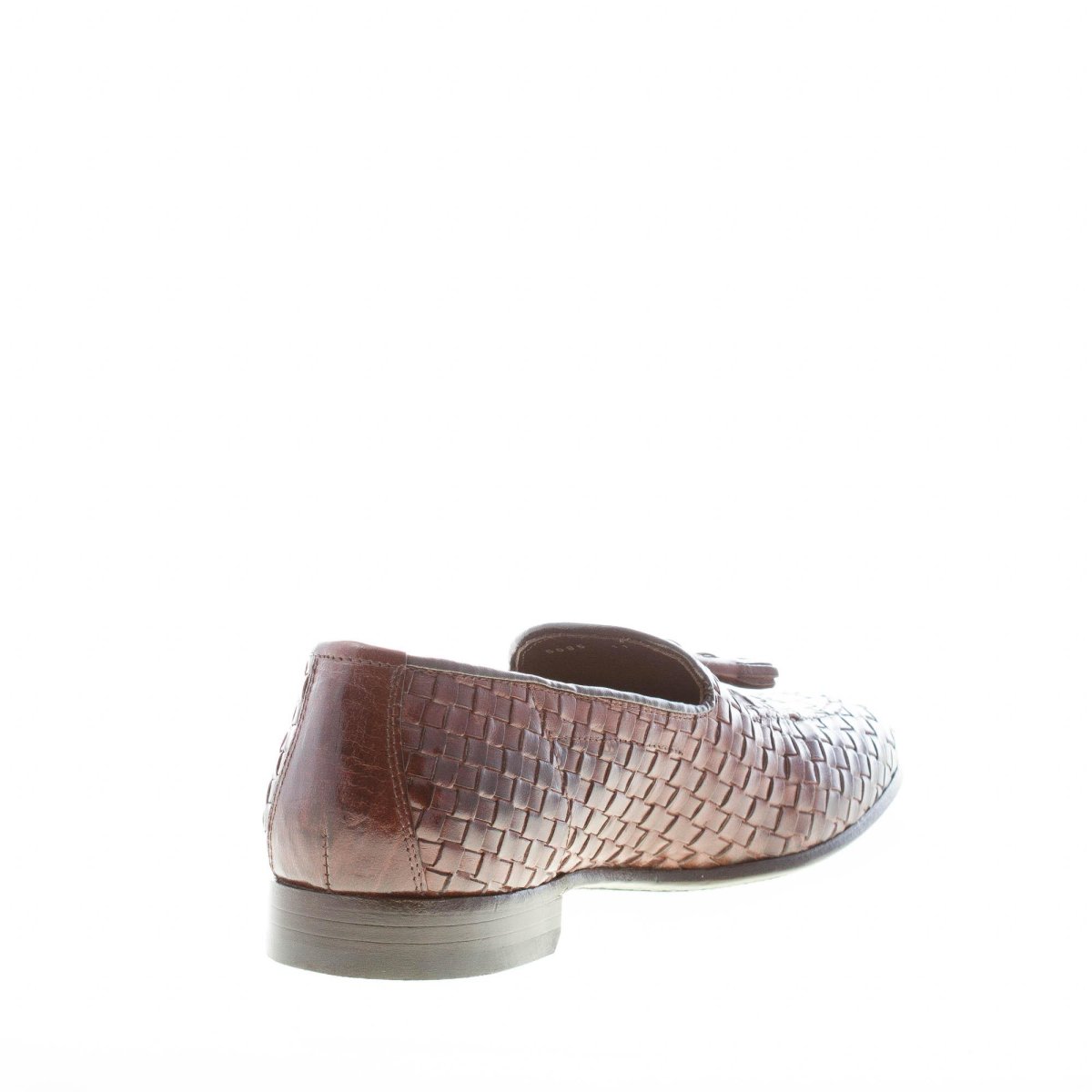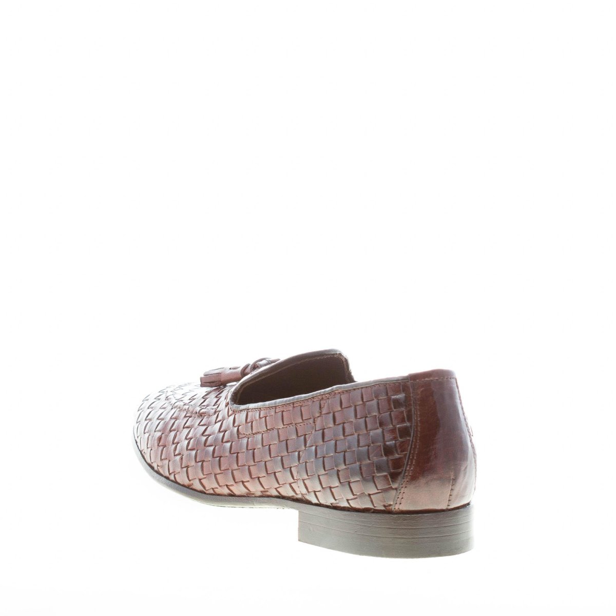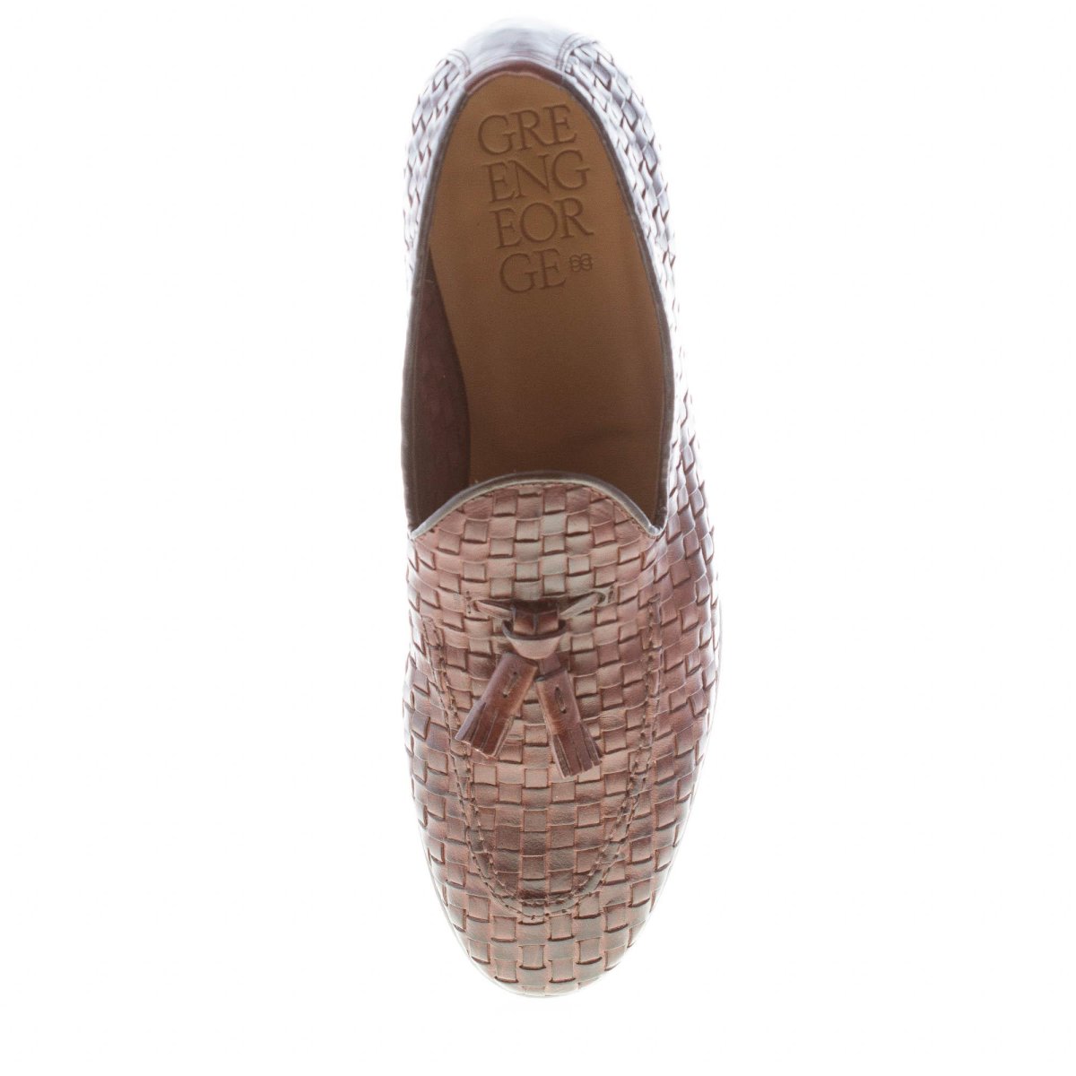 GREEN GEORGE uomo mocassino in pelle intrecciata TESTA DI MORO con nappine. Suola in cuoio
